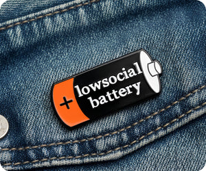 Boost your charm with our Low Social Battery Pin Badge! Perfect for those awkward social situations, this badge is a conversation starter (and a potential excuse for escaping). Display your introversion proudly and embrace the quirkiness within!