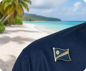 Celebrate the Marshall Islands with this striking flag pin badge! Featuring the iconic blue and orange design, it's perfect for displaying your connection to this Pacific island nation. Attach it to your favourite jacket, backpack, or hat and let your wanderlust shine. Ideal for collectors, heritage enthusiasts, or anyone who loves representing their roots in style. Small in size, big on character.