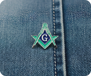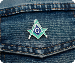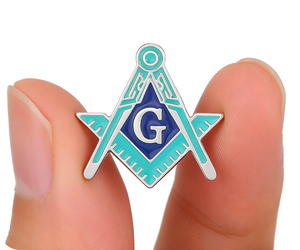 Masonic Silver & Light Green Blue Free Masons Compass Pin Badge