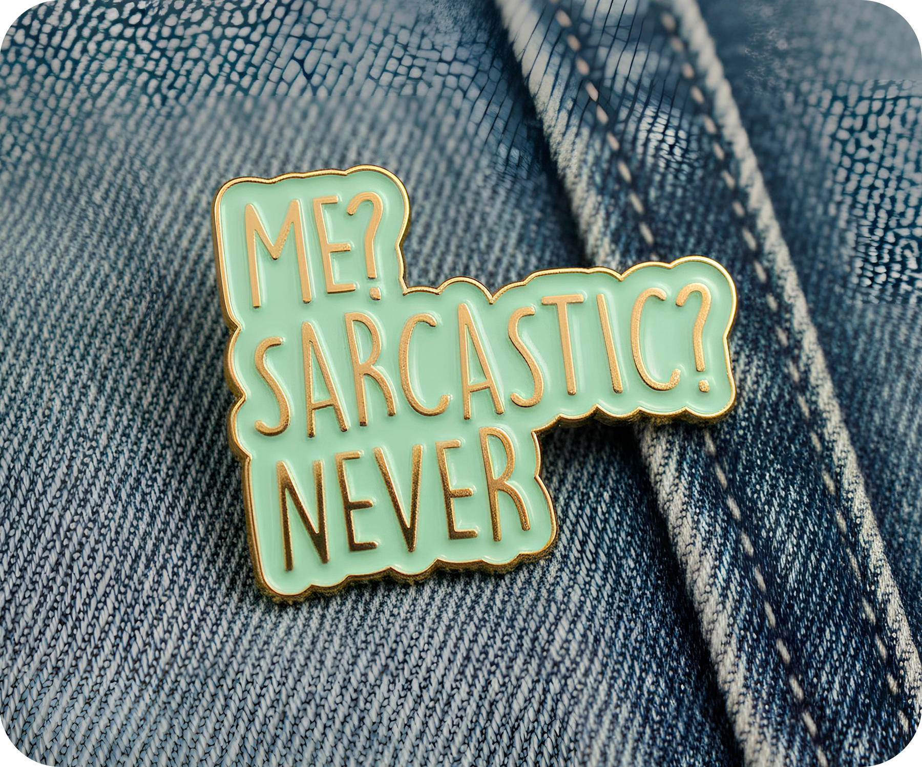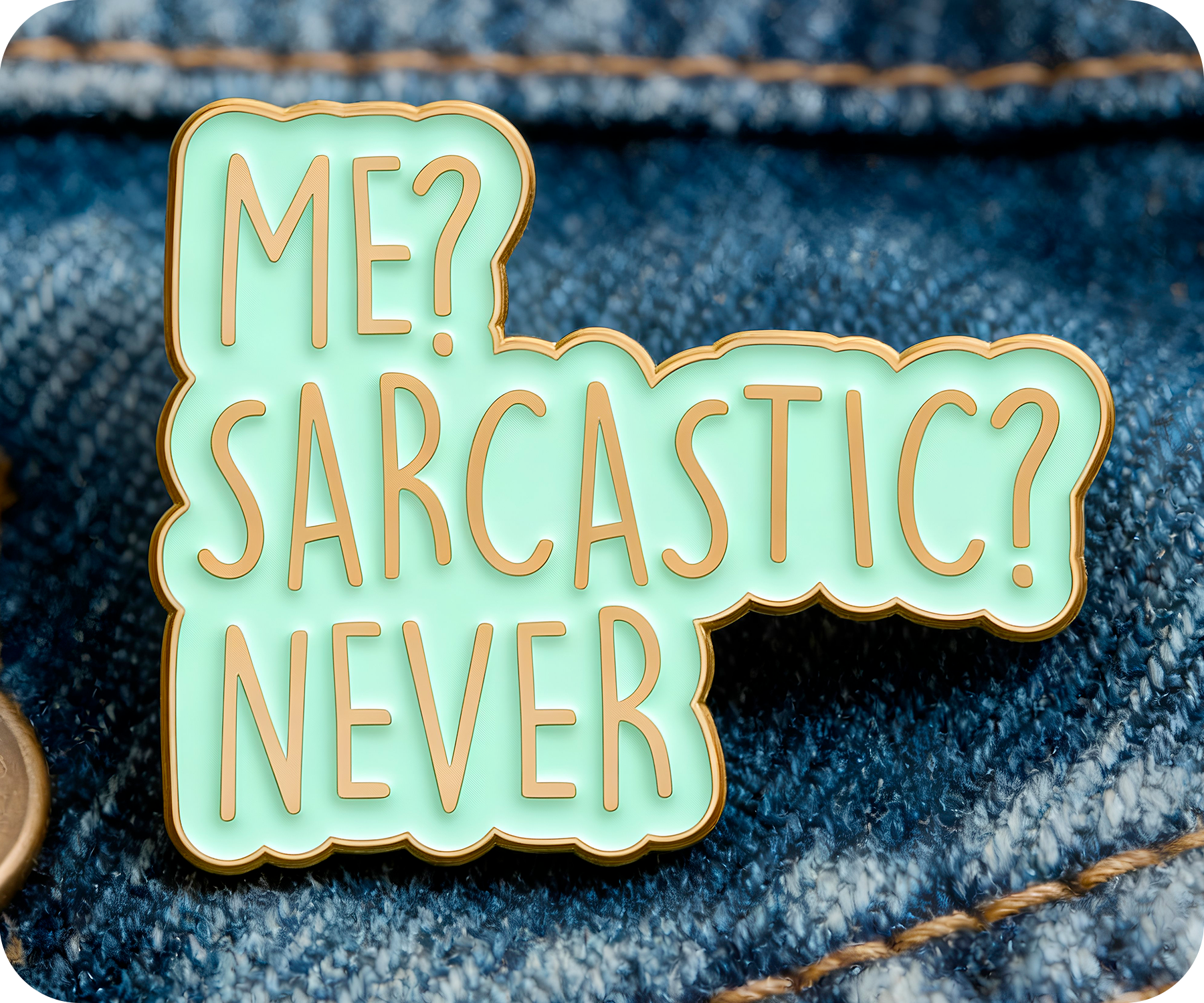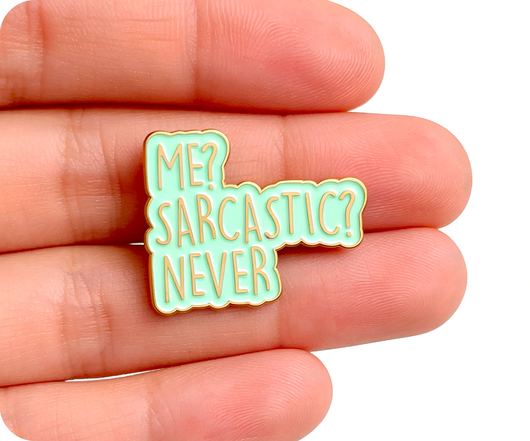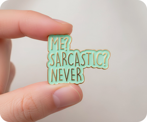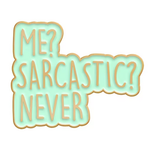 Wear your wit on your sleeve with this hilariously honest "Me Sarcastic? Never!" pin badge. Perfect for quick-witted souls who live for a good eye-roll and clever comebacks, it's the ultimate conversation starter. Clip it to your jacket, backpack, or anywhere you want to broadcast your delightfully sarcastic nature. Small enough to slip into a pocket, bold enough to make everyone laugh—because sometimes the best jokes are the ones we wear!