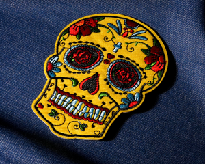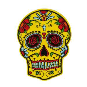 Mexican Day Of The Dead Skull Yellow Patch Iron On (8 x 10cm)