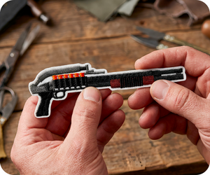 Lock and load with this detailed Mossberg 500/590 Series Pump Action Shotgun patch! This elongated 10 x 3cm iron-on showcases one of America's most trusted and versatile firearms with authentic precision. Perfect for shooting enthusiasts, tactical gear collectors, and military history fans, it's an impressive addition to jackets, vests, or gear bags. Simply heat and press for secure attachment. Whether you're celebrating legendary shotgun engineering, honouring tactical tradition, or showcasing your firearms knowledge, this patch delivers authentic credibility and serious style.