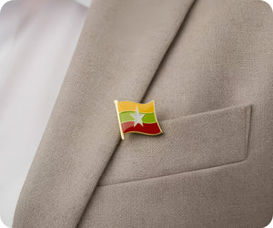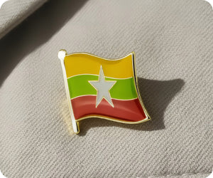 Showcase your Myanmar pride with this striking flag pin badge! Featuring the bold yellow, green, and red colours of Myanmar's national flag, it's a wonderful way to celebrate Southeast Asian heritage or show your connection to this fascinating nation. Clip it to your jacket, bag, or anywhere you want to add cultural character. A compact badge bursting with Myanmar spirit!