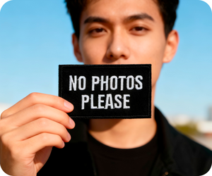 Keep the paparazzi at bay with this cheeky privacy patch! Sporting the bold message "No Photos Please" in striking black, this 7.8 x 5cm iron-on design is perfect for anyone who values their personal space with a sense of humour. Stick it on jackets, bags, or hoodies to broadcast your preference for staying out of the spotlight—all while raising a smile. Heat and press to apply, no sewing needed. Ideal for introverts, privacy advocates, and anyone who appreciates a witty way to set boundaries.