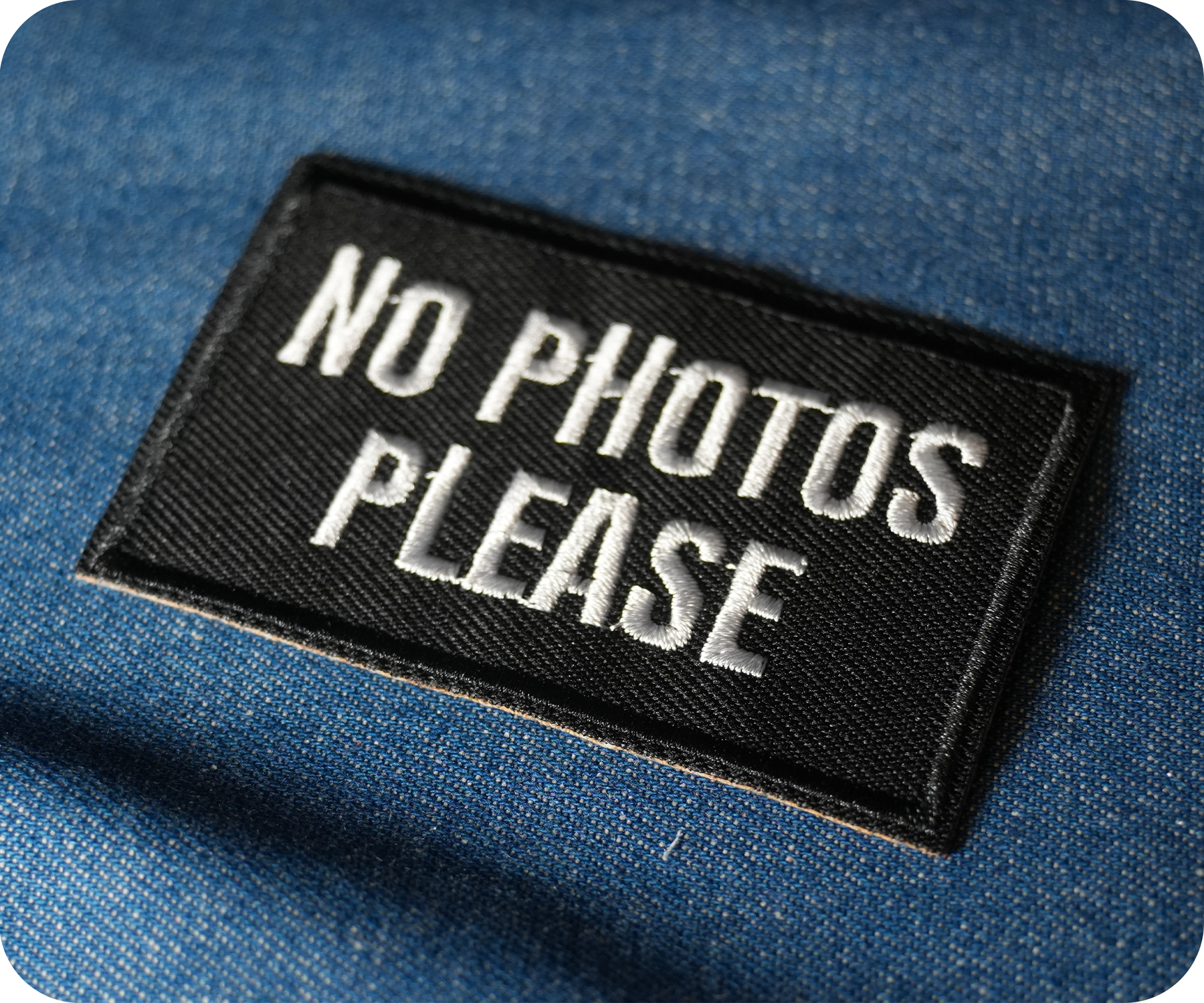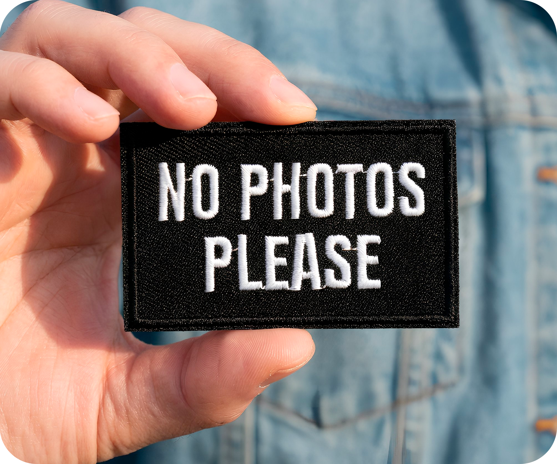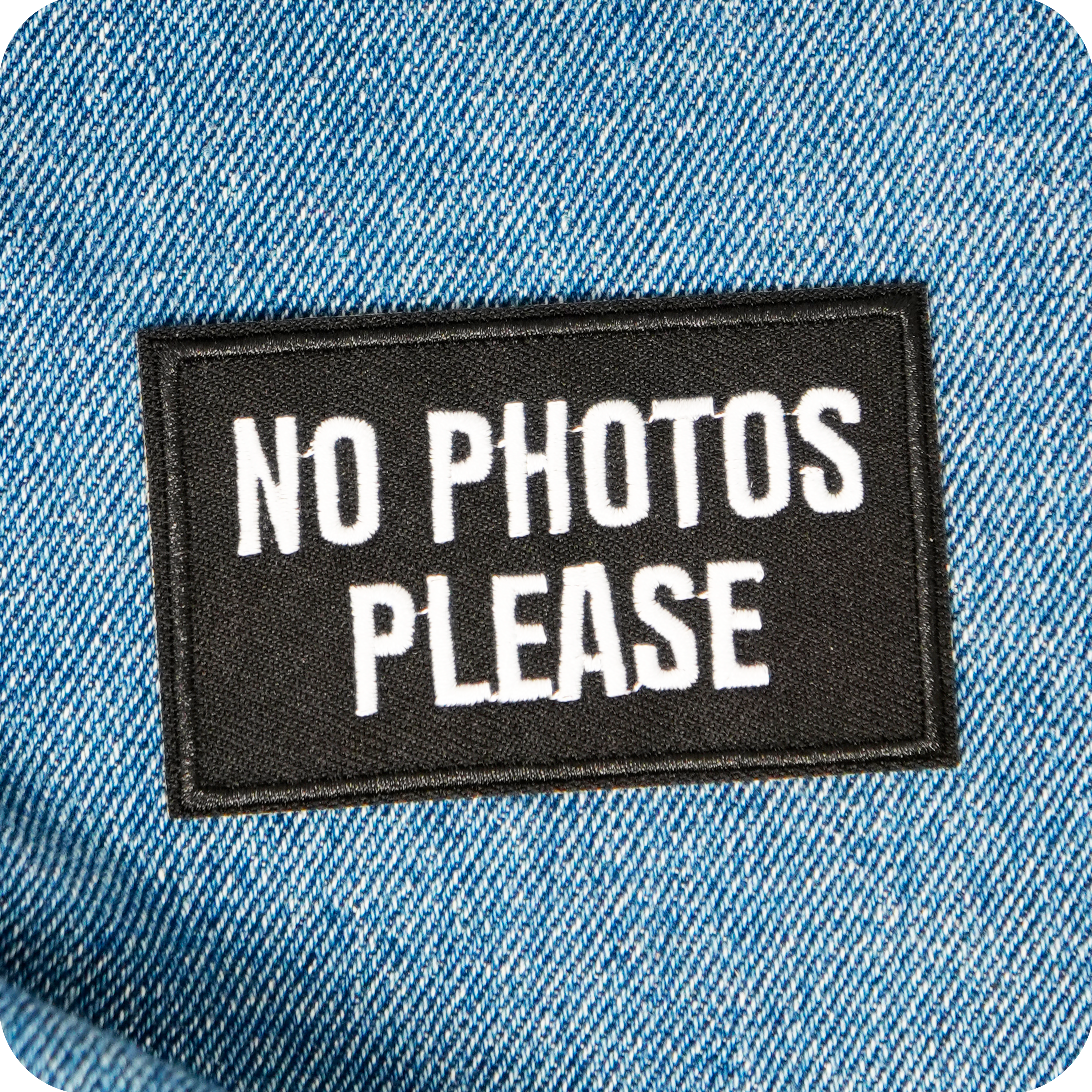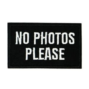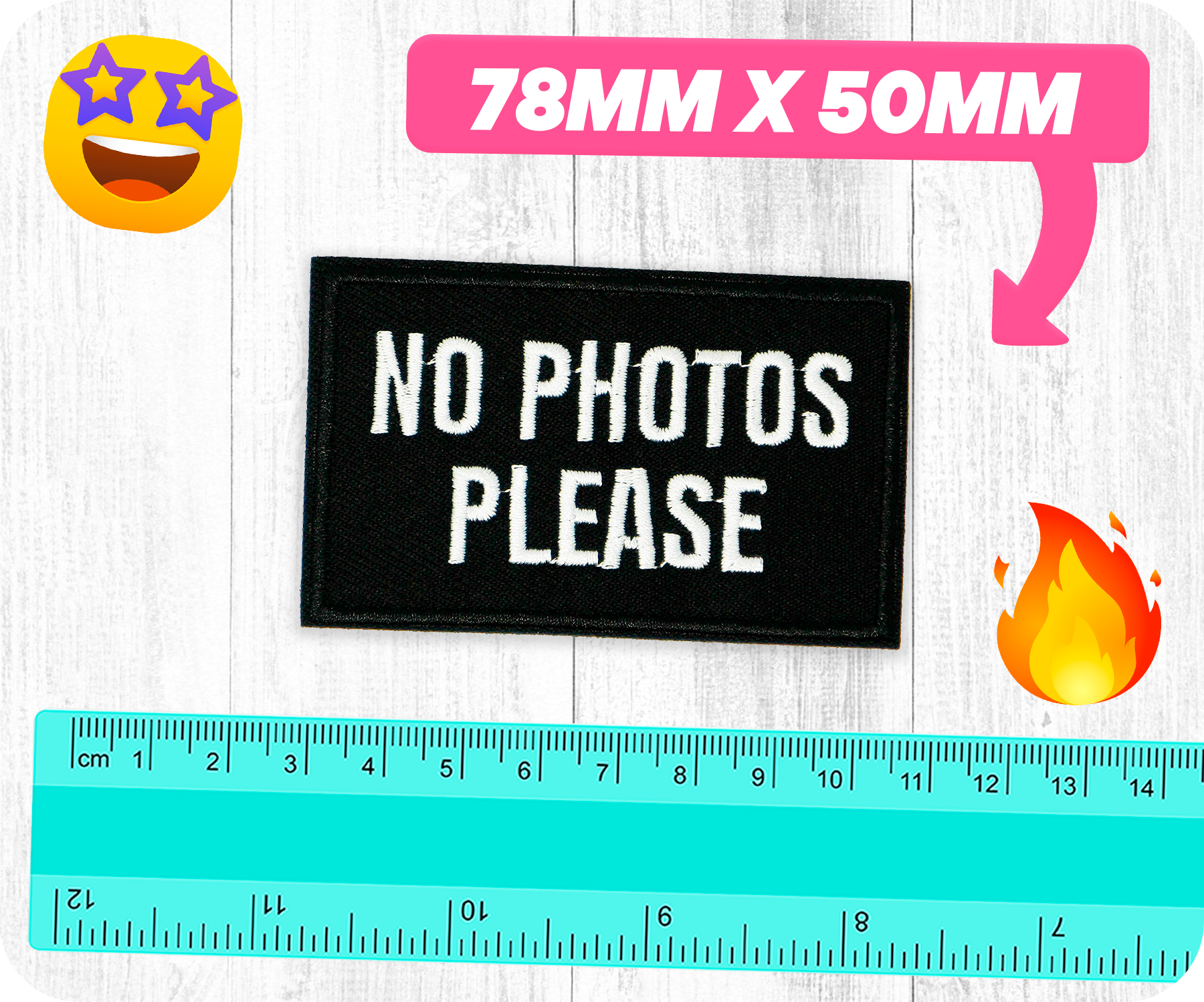 No Photos Please Black Iron On Patch (7.8 x 5cm)