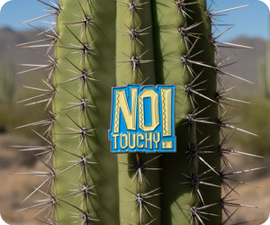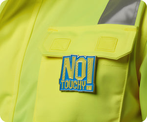Keep others from touching you with the No Touchy! Pin Badge. This quirky badge not only adds a fun touch to your outfit, but also serves as a gentle reminder for others to keep their hands to themselves. Say goodbye to unwanted hugs and handshakes!