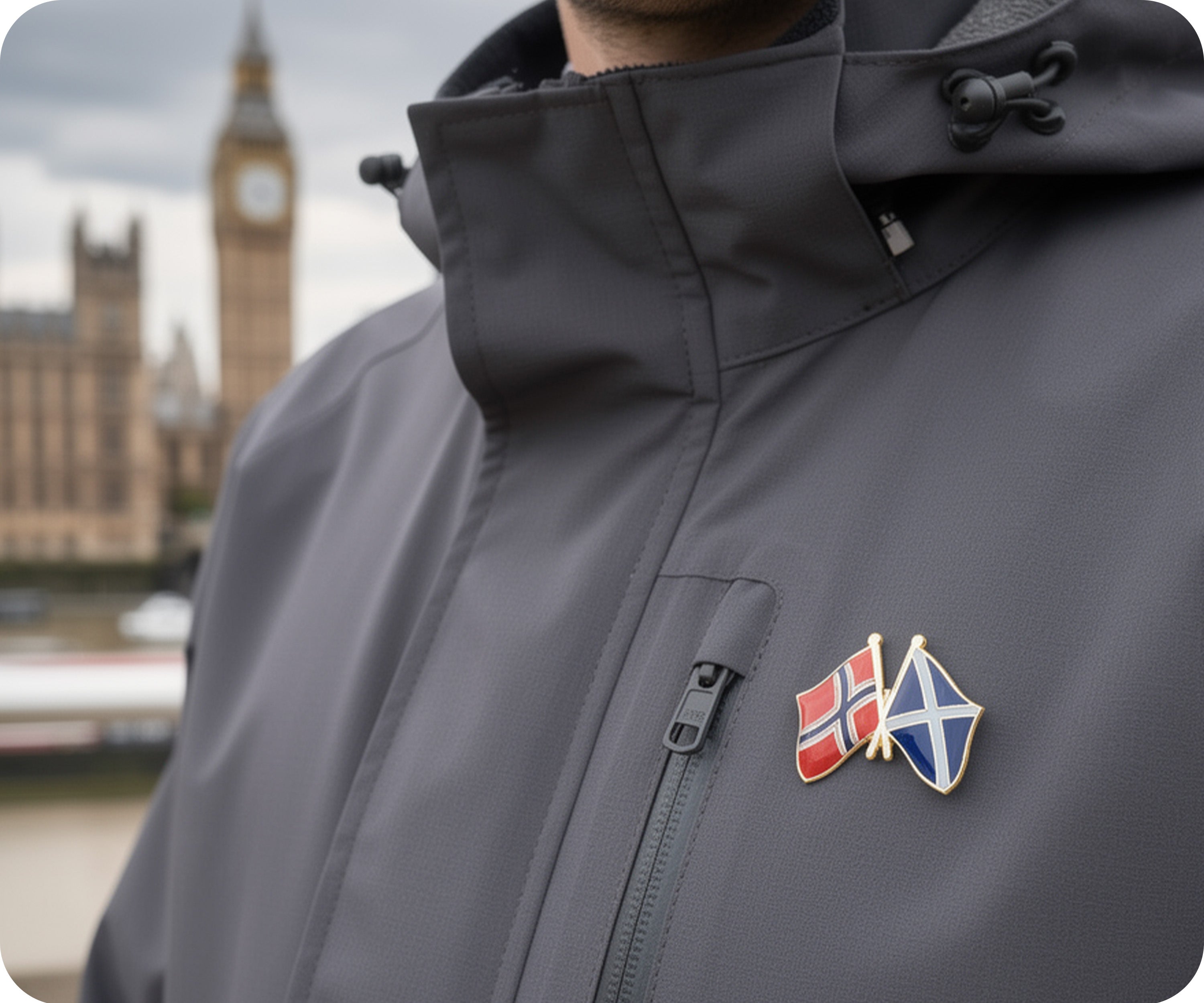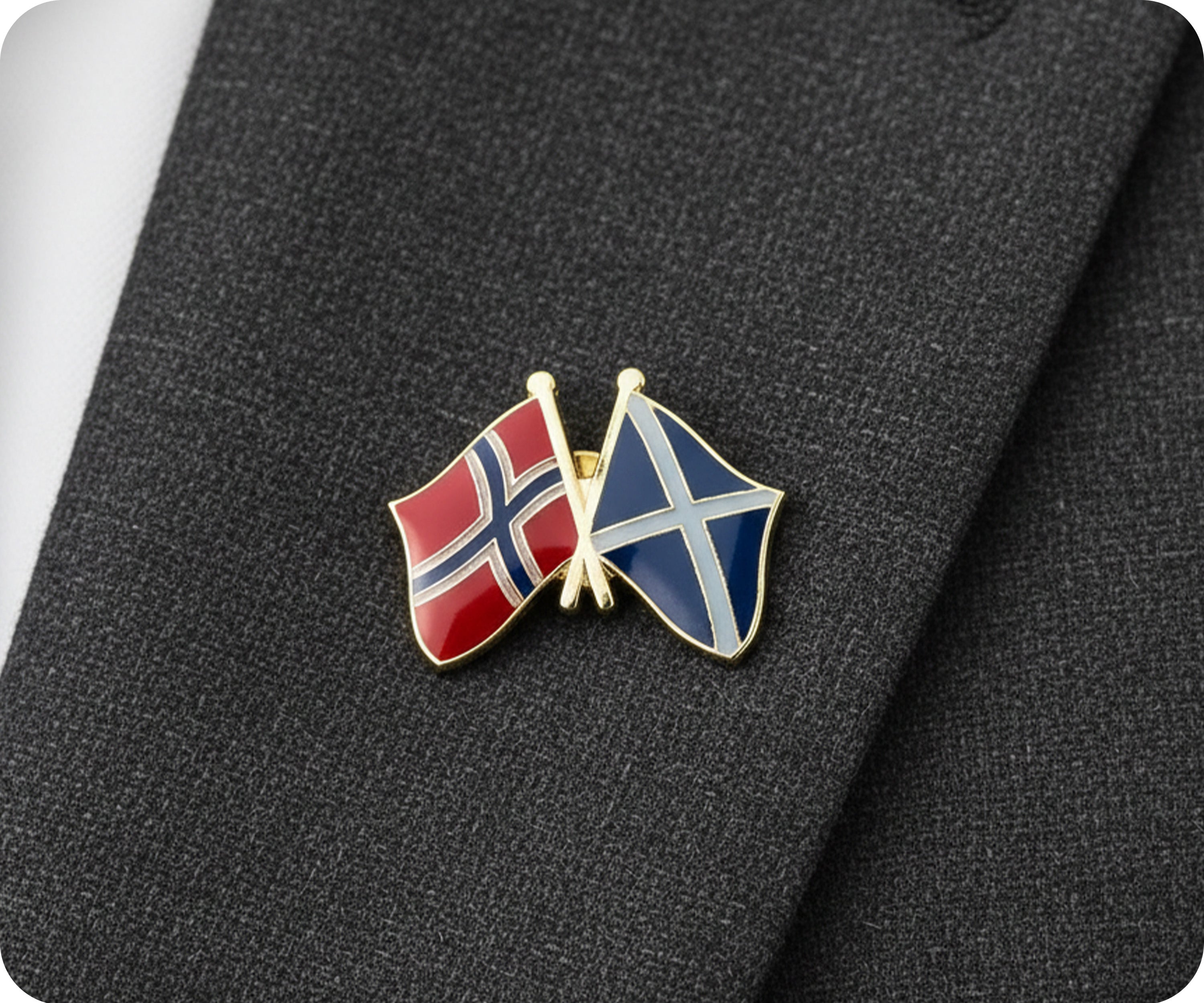 ¡Muestra al mundo tu amistad especial con el pin de la amistad entre Noruega y Escocia! Este pin de esmalte duro mide 2,5 cm x 1,9 cm y tiene un cierre de mariposa para que puedas sujetarlo con estilo. ¡Úsalo para mostrar tu amor por Noruega y Escocia!