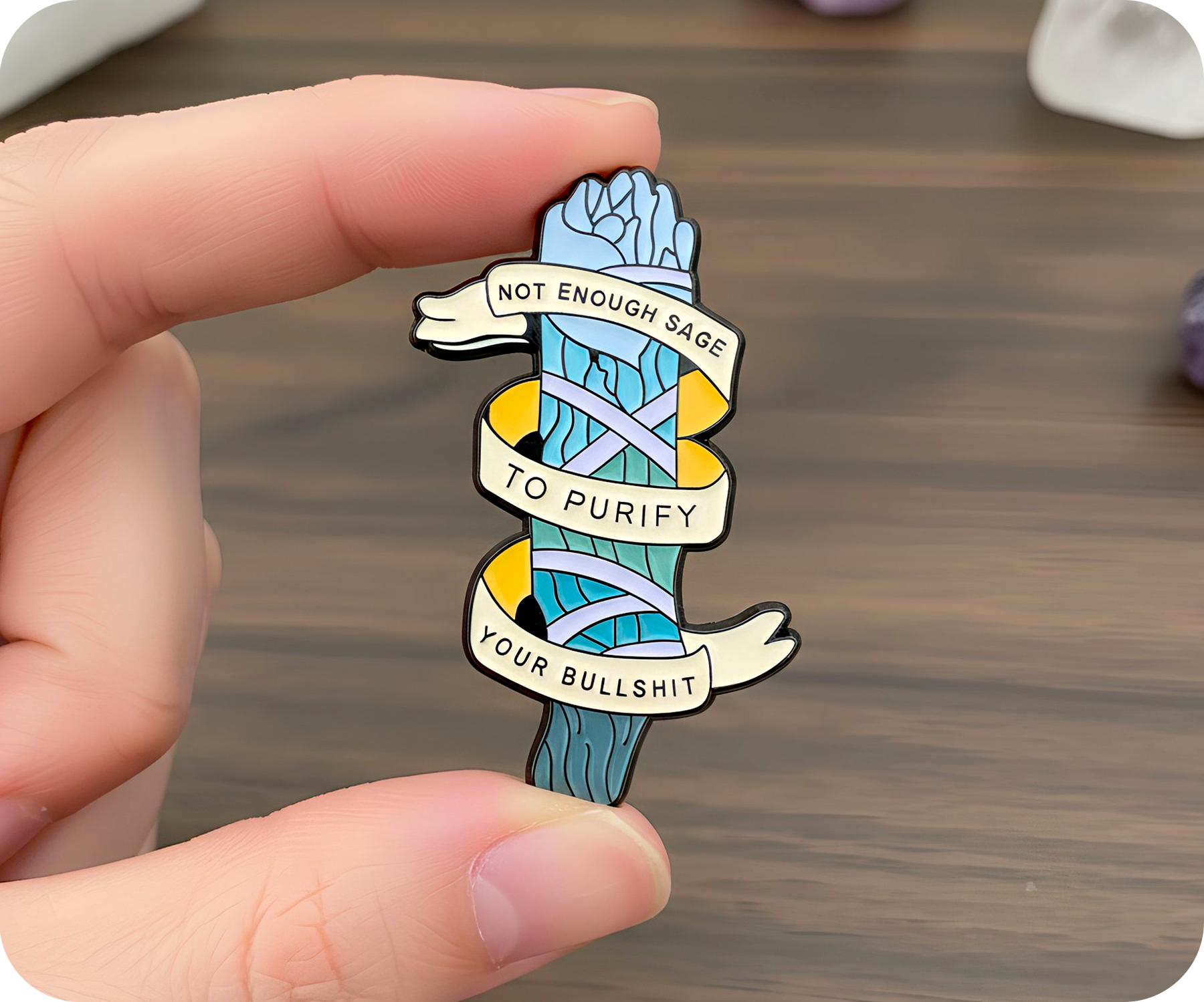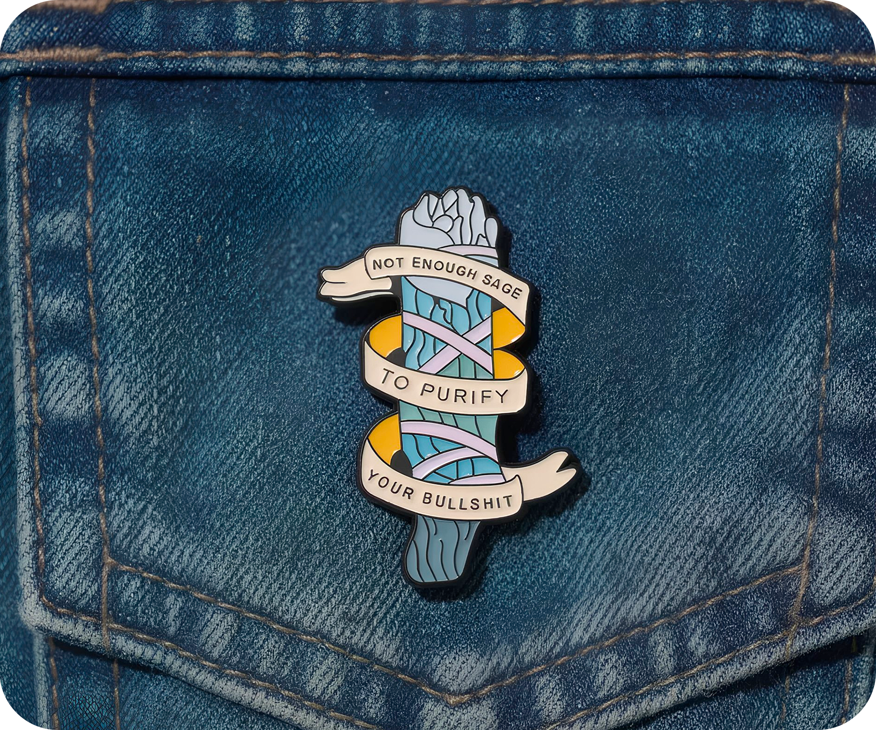 Keep it real with the Not Enough Sage To Purify Your Bullshit Pin Badge. This cheeky accessory delivers a hilarious and playful message, perfect for anyone who’s had enough of nonsense. Pin it on your jacket or bag to add a dose of sass and humor to your everyday style.