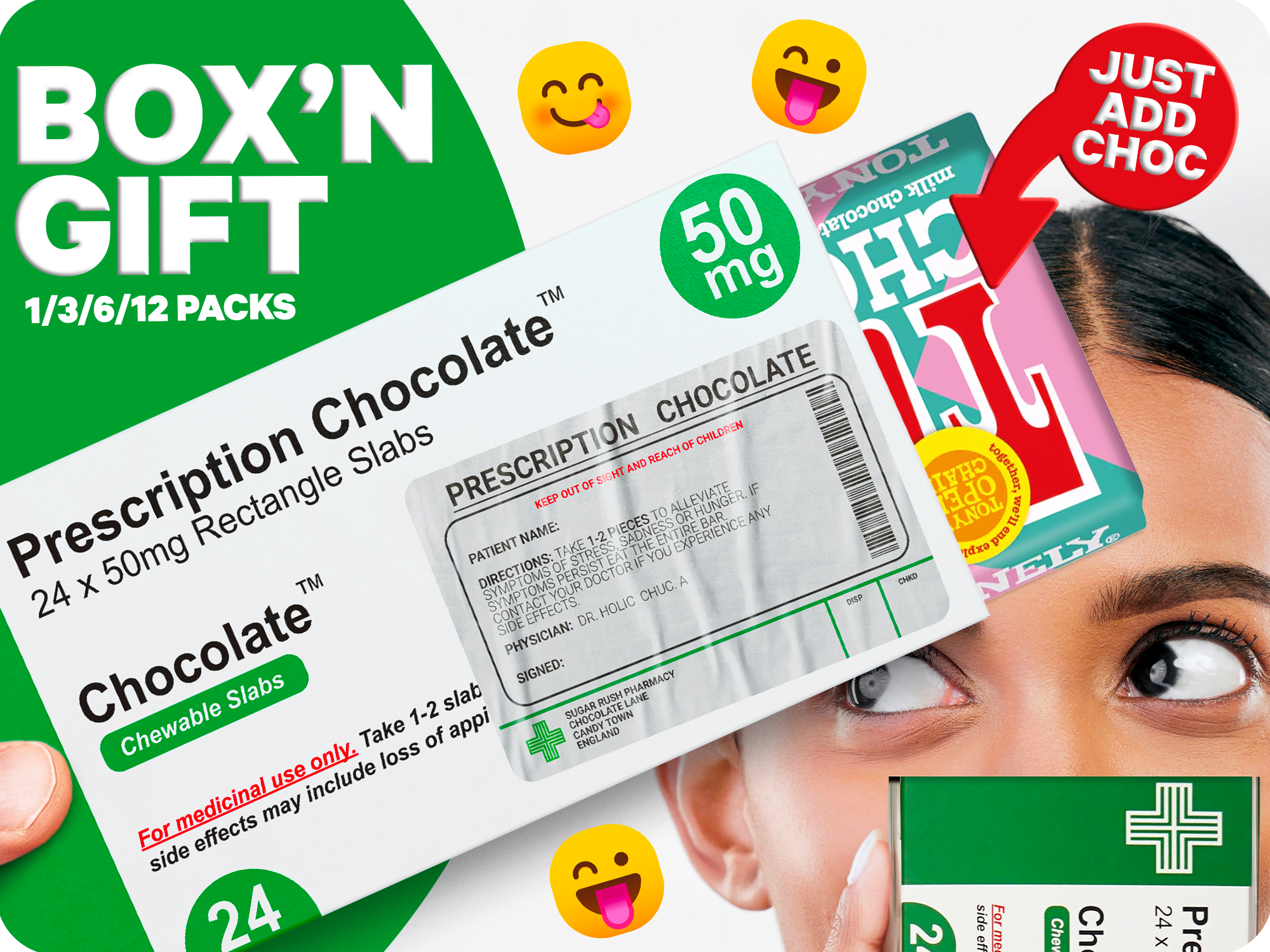 Regalo novedoso: estas cajas de regalo de chocolate recetado ofrecen una forma única y divertida de presentar un dulce obsequio.