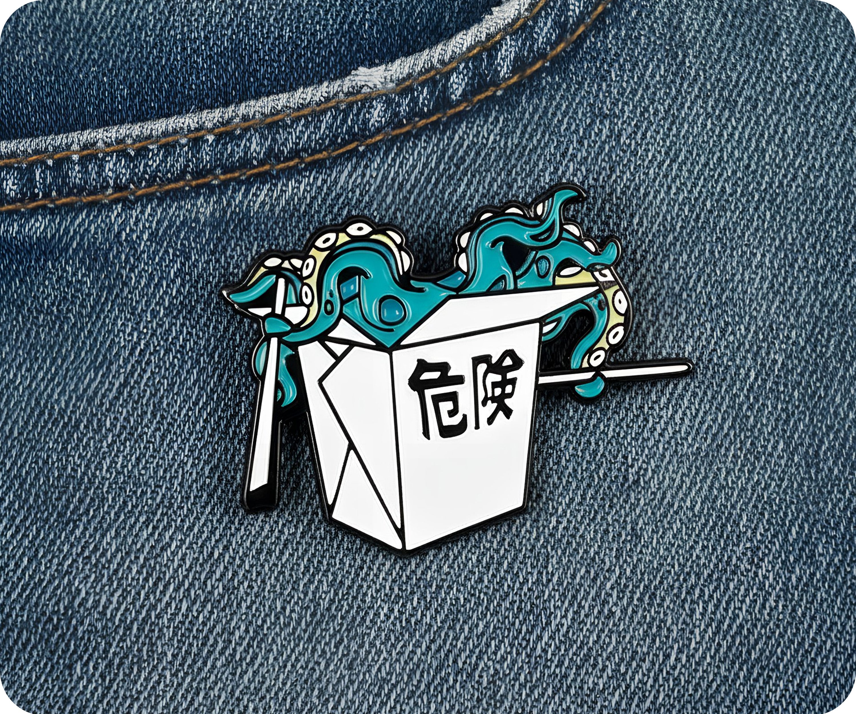 Octopus Noodles Box Pin Badge