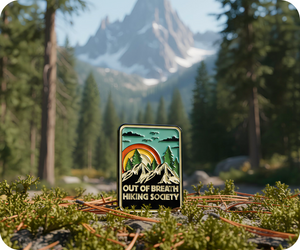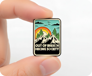 Celebrate the glorious struggle of uphill trekking with this Out Of Breath Hiking Society Travel Pin Badge. For those who know that breathlessness is just part of the adventure, this badge is your badge of honour on every steep climb. Attach it to your rucksack, hiking boots, or jacket and declare your membership in the sweaty, determined, utterly devoted hiking community. A witty tribute to the burn in your legs, the gasp in your lungs, and the absolutely worth-it views at the summit, this badge proves you're willing to suffer for stunning scenery. Perfect for trail warriors who wouldn't have it any other way.