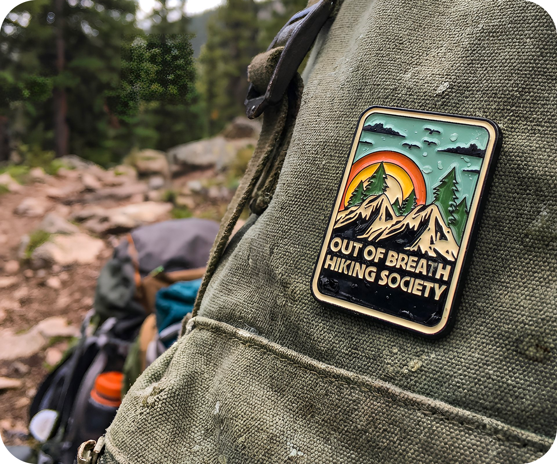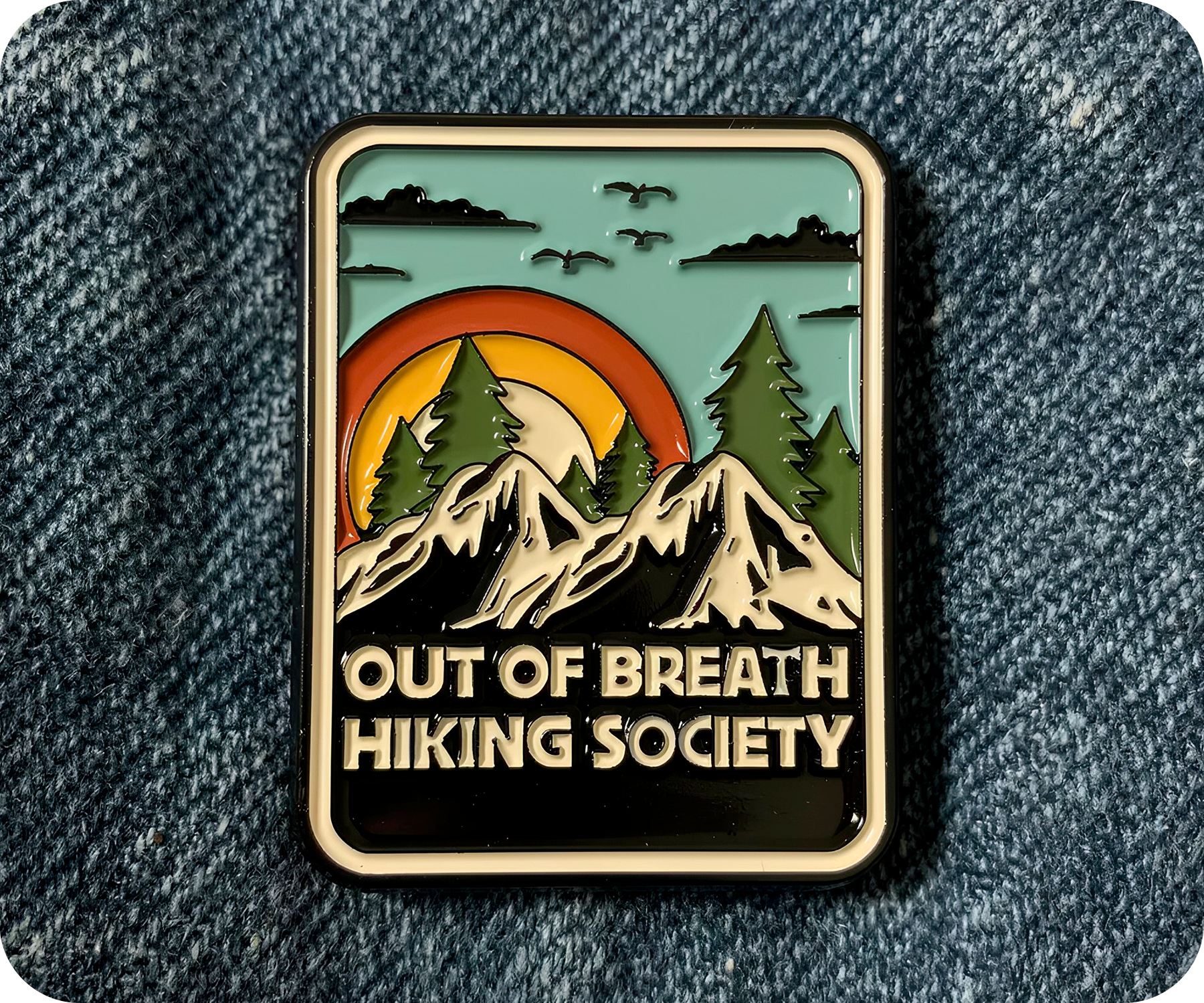 Out Of Breath Hiking Society Travel Pin Badge