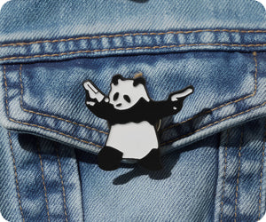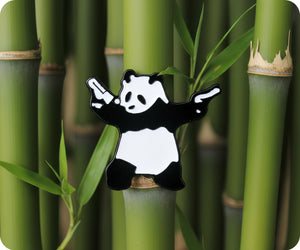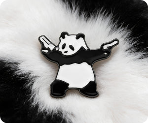 Meet the coolest bear in town! This audacious "Panda Gagster With Pistols" pin badge brings attitude and humour in one adorable package. Perfect for fans of quirky, edgy designs and anyone who appreciates a cheeky sense of style, it's guaranteed to turn heads and spark conversations. Fasten it to your jacket, backpack, or anywhere you want to flaunt your rebellious side. Small but seriously stylish—because even pandas can be tough!