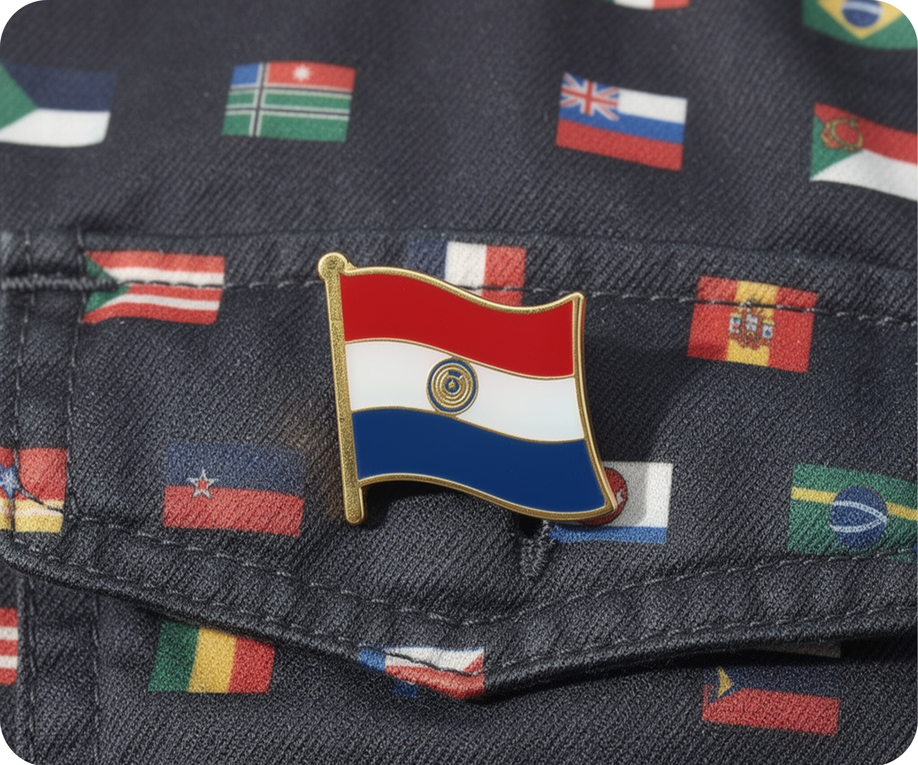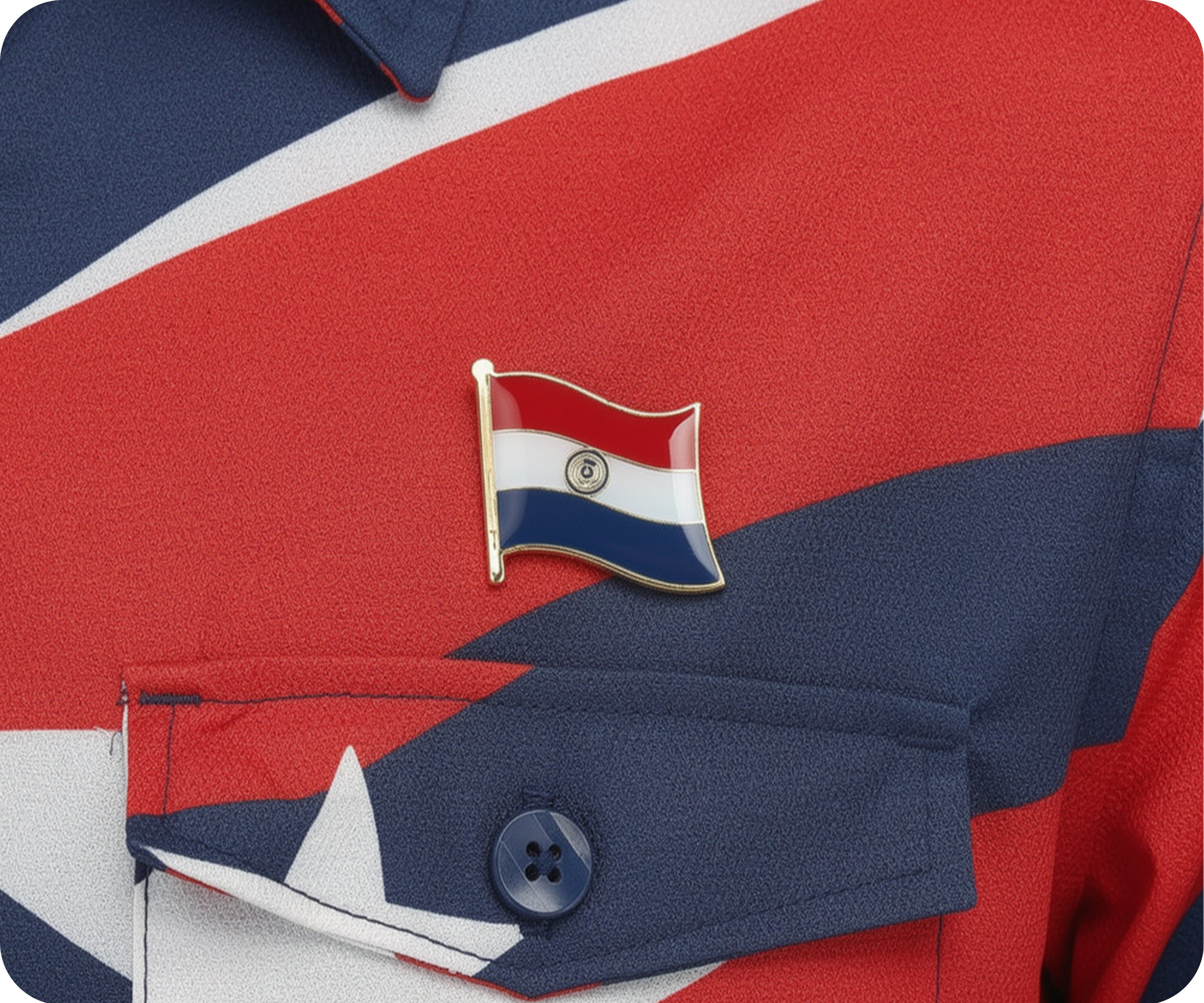 Luce tu orgullo por Paraguay en la manga (o solapa) con este pin con la bandera. Este pin de metal agregará un toque de originalidad y patriotismo a cualquier atuendo. Perfecto para lucirlo en eventos o simplemente como un sutil recordatorio de tu amor por Paraguay. ¡Vamos albirroja!