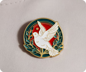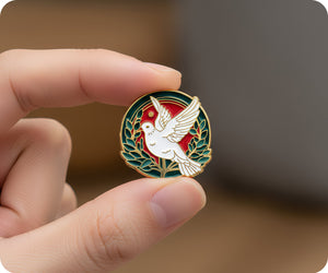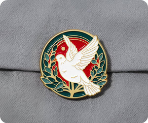 Peace Dove Olive Leaf Round Pin Badge Make a statement with this serene round pin badge featuring a graceful dove and olive leaf design. A timeless symbol of peace and hope, it's the perfect way to show what matters to you. Clip it to your bag, jacket, or backpack and let your values do the talking. Small in size but mighty in meaning, this badge is ideal for activists, dreamers, and anyone who believes in a kinder world. Wear your message with style!