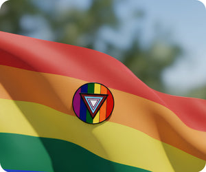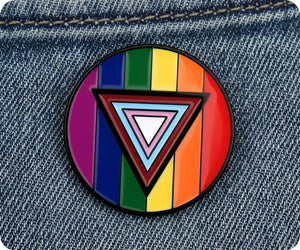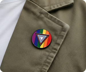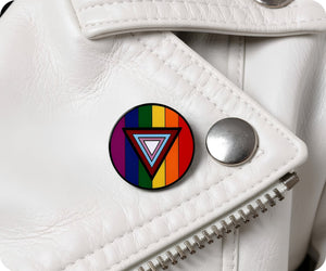 Celebrate pride with a splash of playful color in the Rainbow Triangle In Circle Pride Pin Badge. This fun and vibrant accessory is perfect for showing your support and spreading positive vibes wherever you go. Add a cheerful pop of pride to any outfit with this bright, spirited pin!