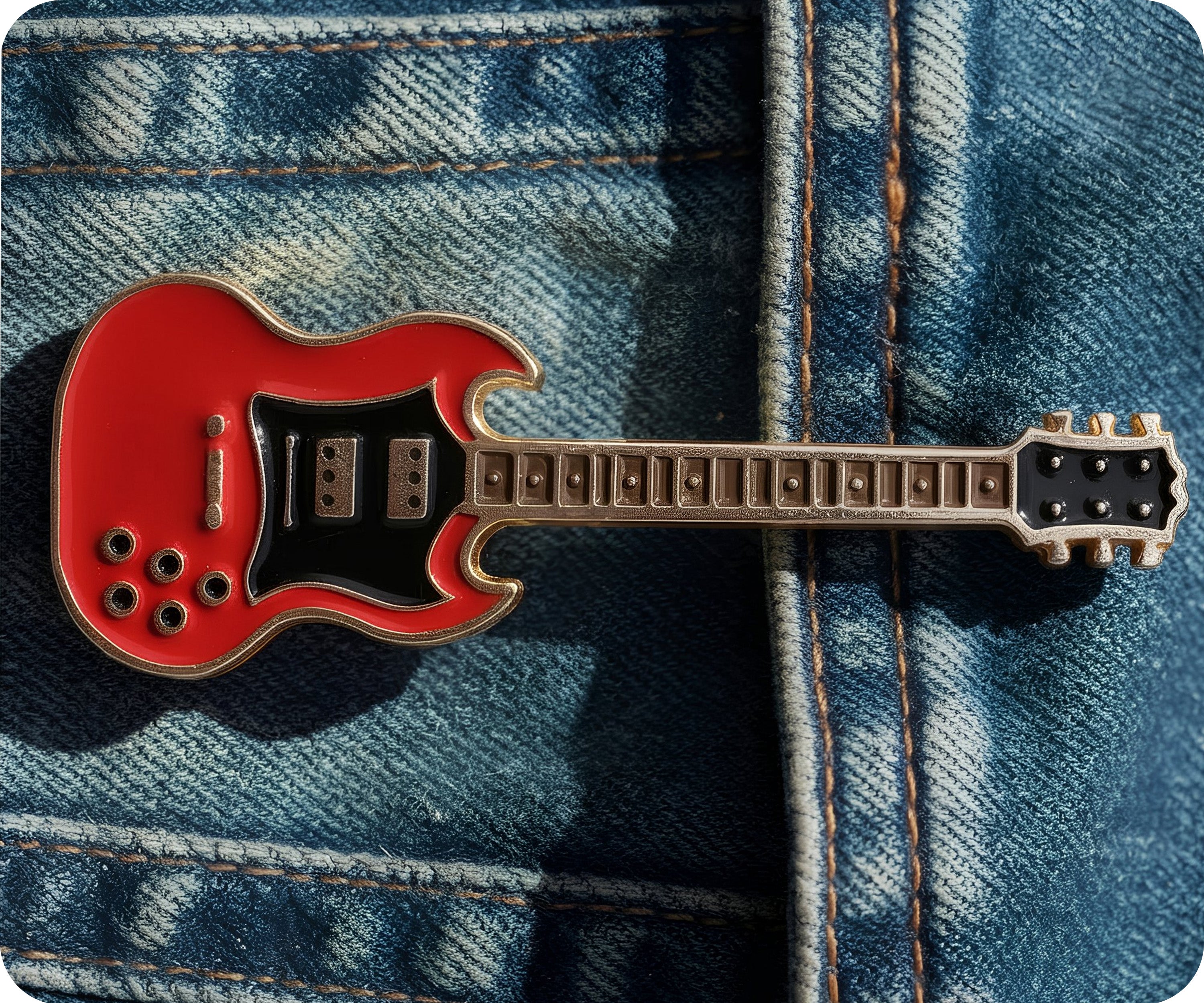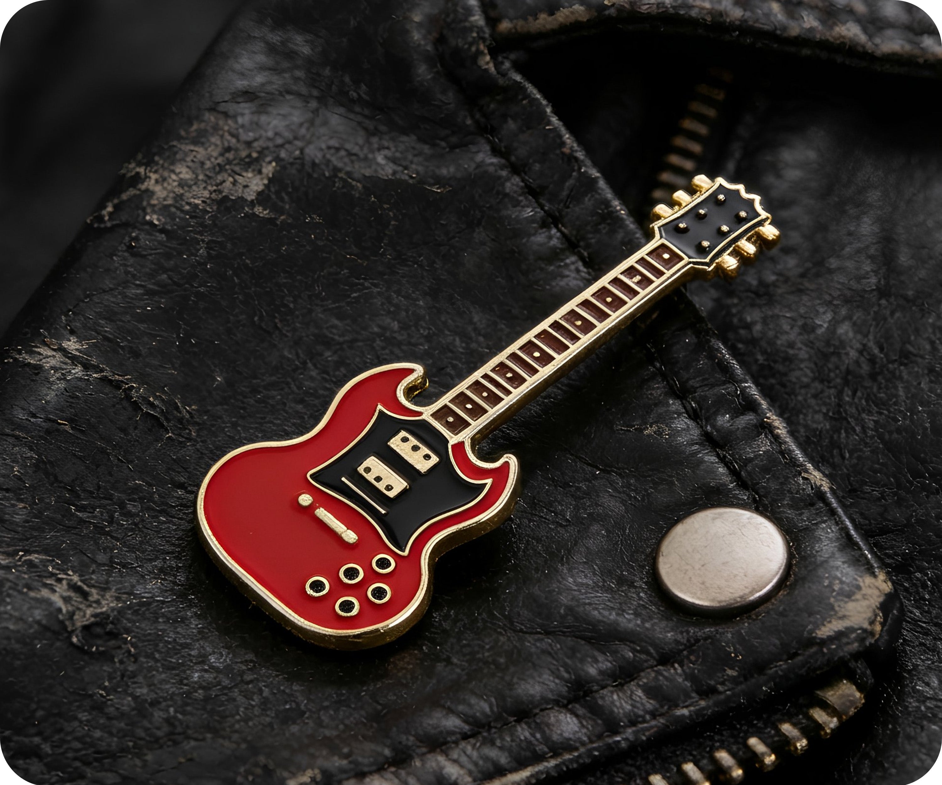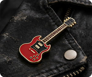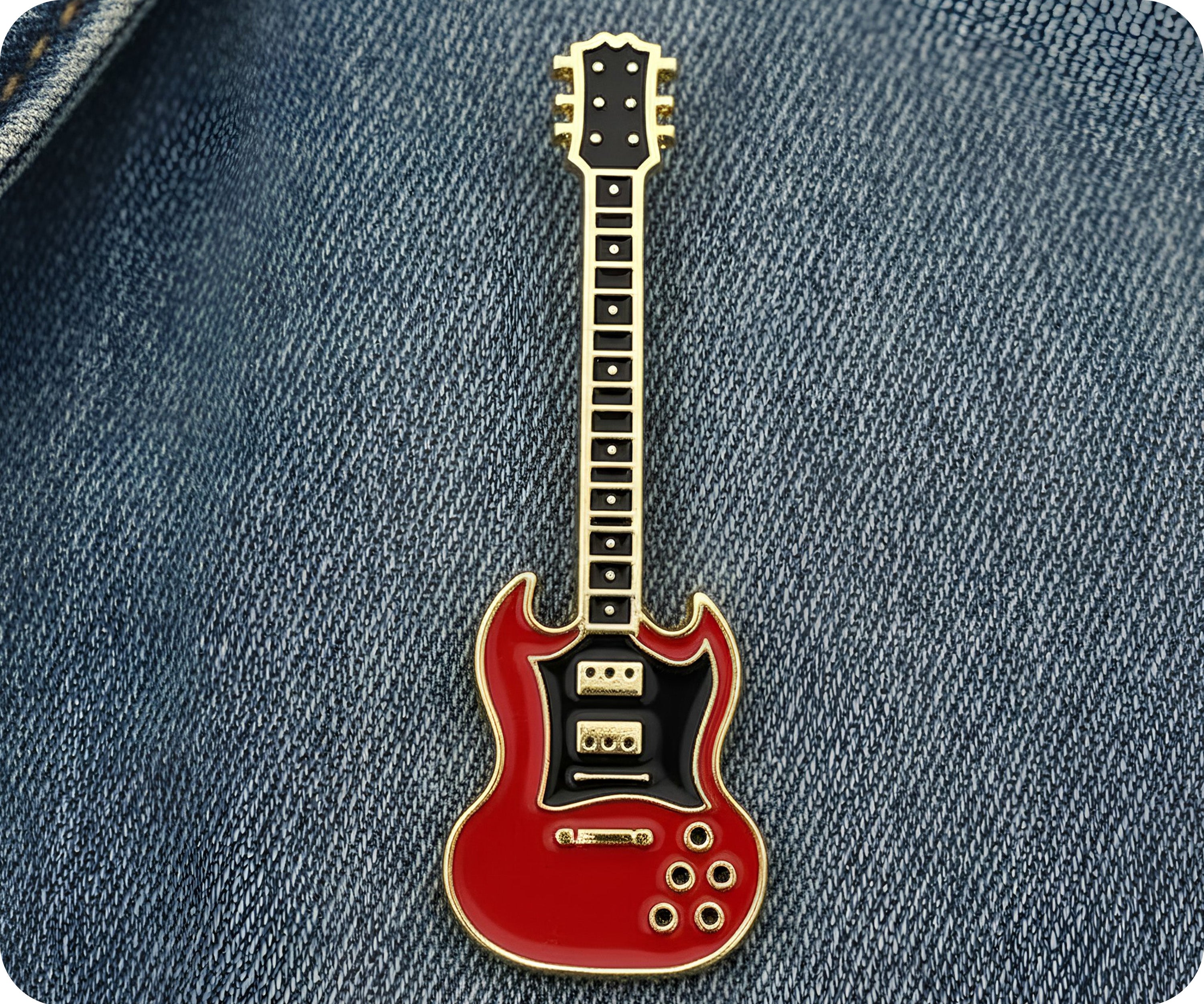 Rock on with this Red Electric Guitar Pin Badge! Perfect for any music enthusiast, this badge adds a bold and playful touch to any outfit. Get ready to strum up some fun with this quirky accessory. (Does not actually play music. Sorry, rockstars!)