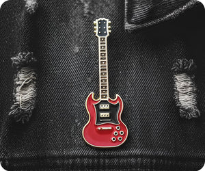 Red Electric Guitar Pin Badge
