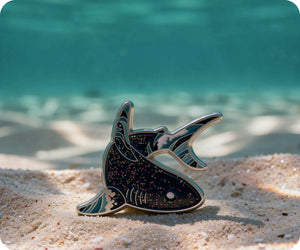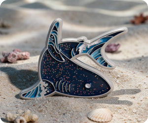 Dive into sparkle with this shimmering reef shark pin badge. Combining ocean adventure with glittery glamour, it's the perfect accessory for marine lovers and those who appreciate a bit of shimmer. This eye-catching badge brings coastal vibes and playful energy to jackets, bags, or anywhere you fancy a splash of oceanic charm. Whether you're a shark enthusiast, beach devotee, or simply love glittery details, this badge makes waves with style and personality.