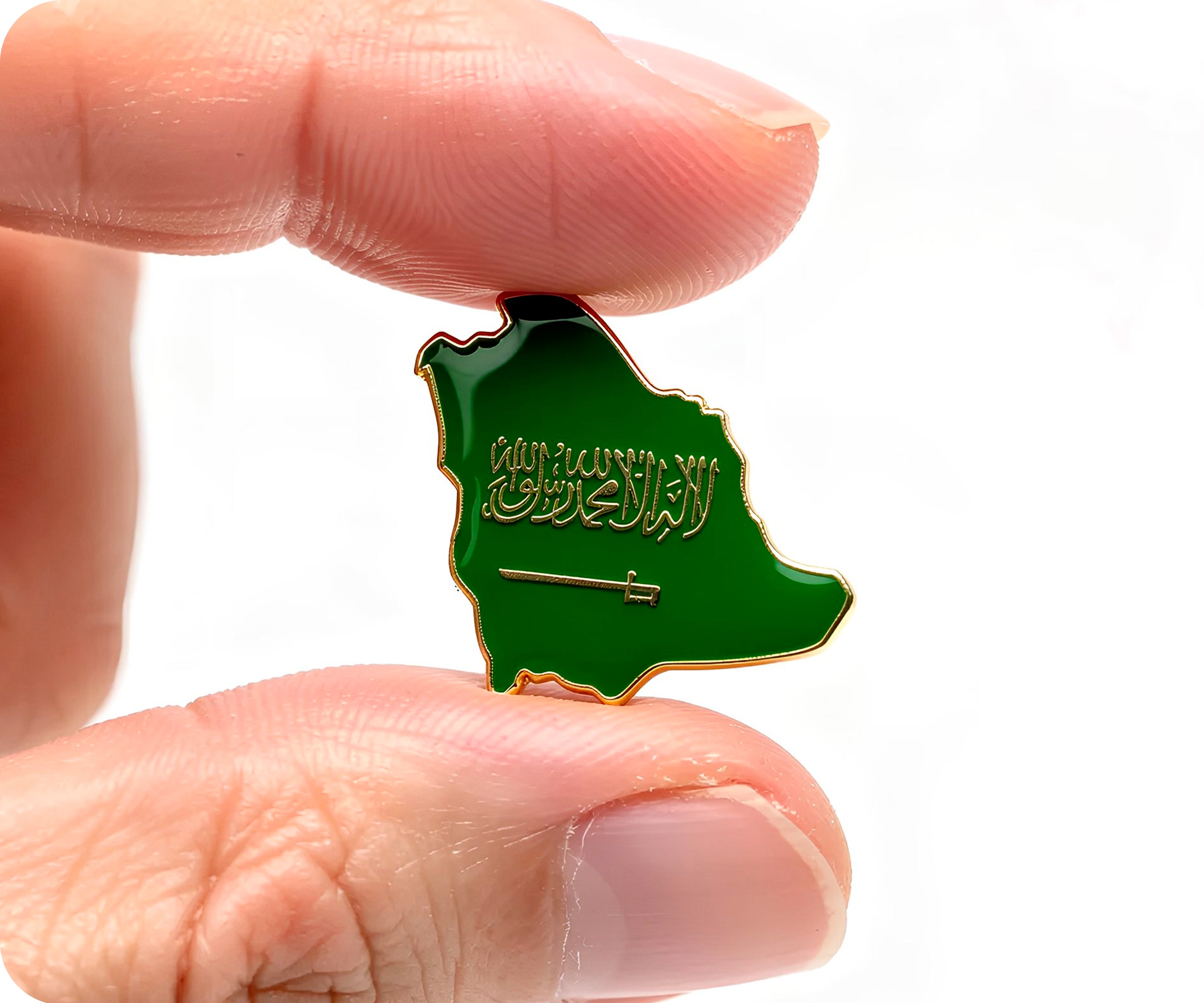 ¡Haz una declaración con estilo! Usa este pin con la forma del país de Arabia Saudita de 2,3 cm x 2 cm y muestra tu amor por la cultura de Medio Oriente. ¡Este pin es el accesorio perfecto para mostrar tu patriotismo y darle vida a cualquier atuendo! ‼️