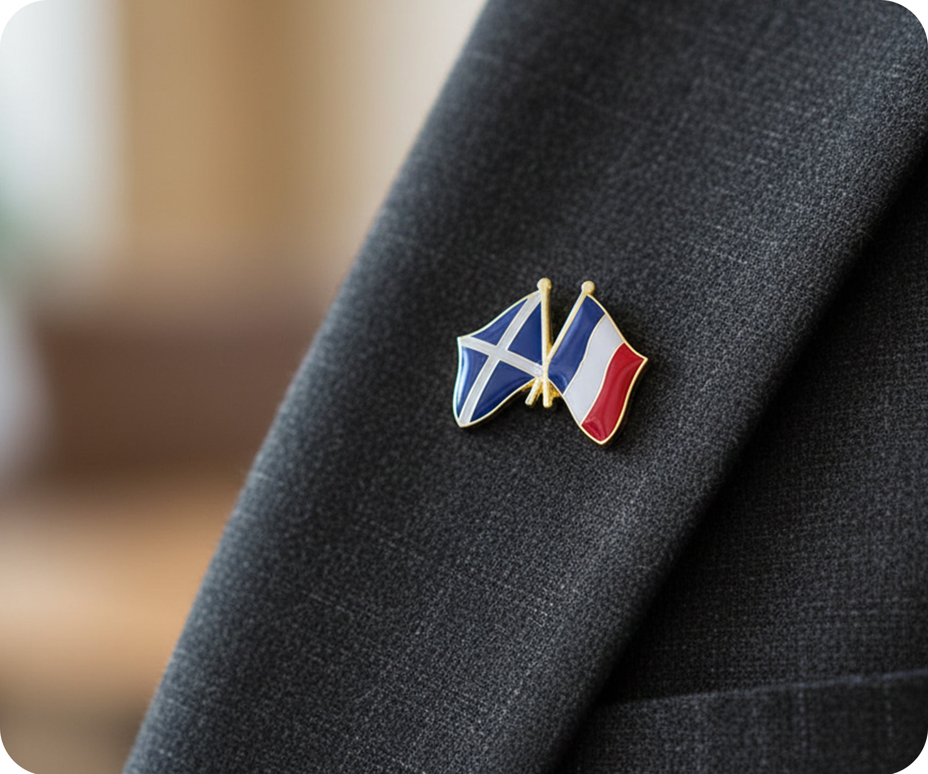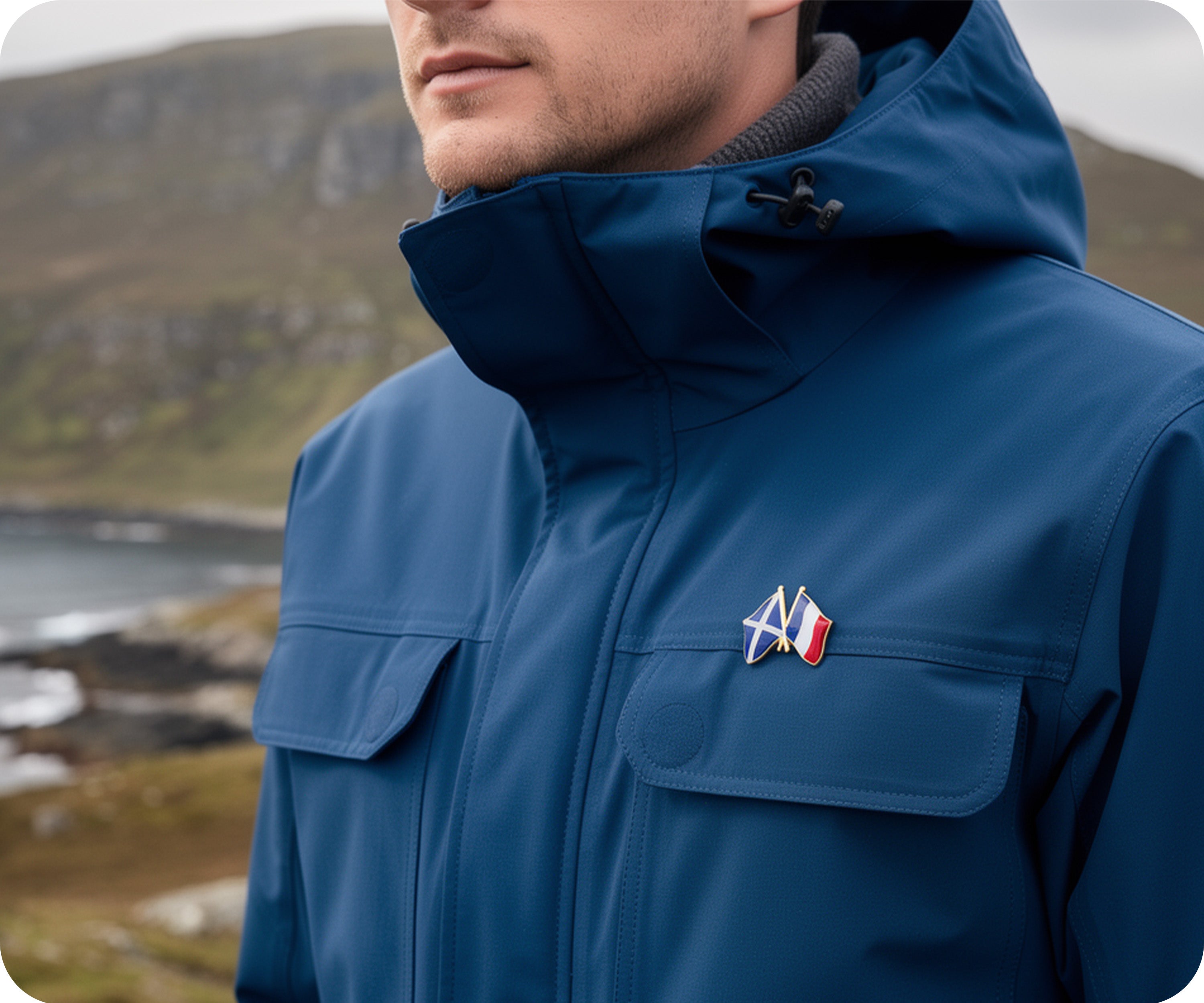 🏴🫶🇫🇷 Pin de esmalte para solapa con la amistad entre Escocia y Francia