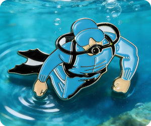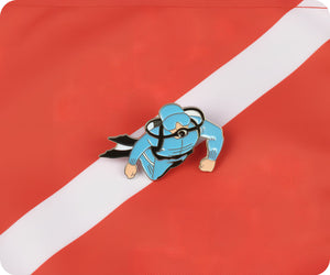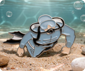 Explore the depths of style with our SCUBA diver pin badge! This quirky accessory will make a splash with any outfit. Dive into fashion and show off your love for all things nautical. Perfect for diving enthusiasts and ocean lovers alike. (No wet suit required!)