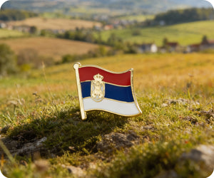 Muestra tu amor por Serbia con esta insignia con la bandera única. Perfecta para agregar un toque de color a cualquier atuendo, esta insignia es imprescindible para cualquier serbio patriótico. ¡Llévala con orgullo y muestra tu excentricidad! (¡Serbia es algo serio, pero no demasiado serio!)