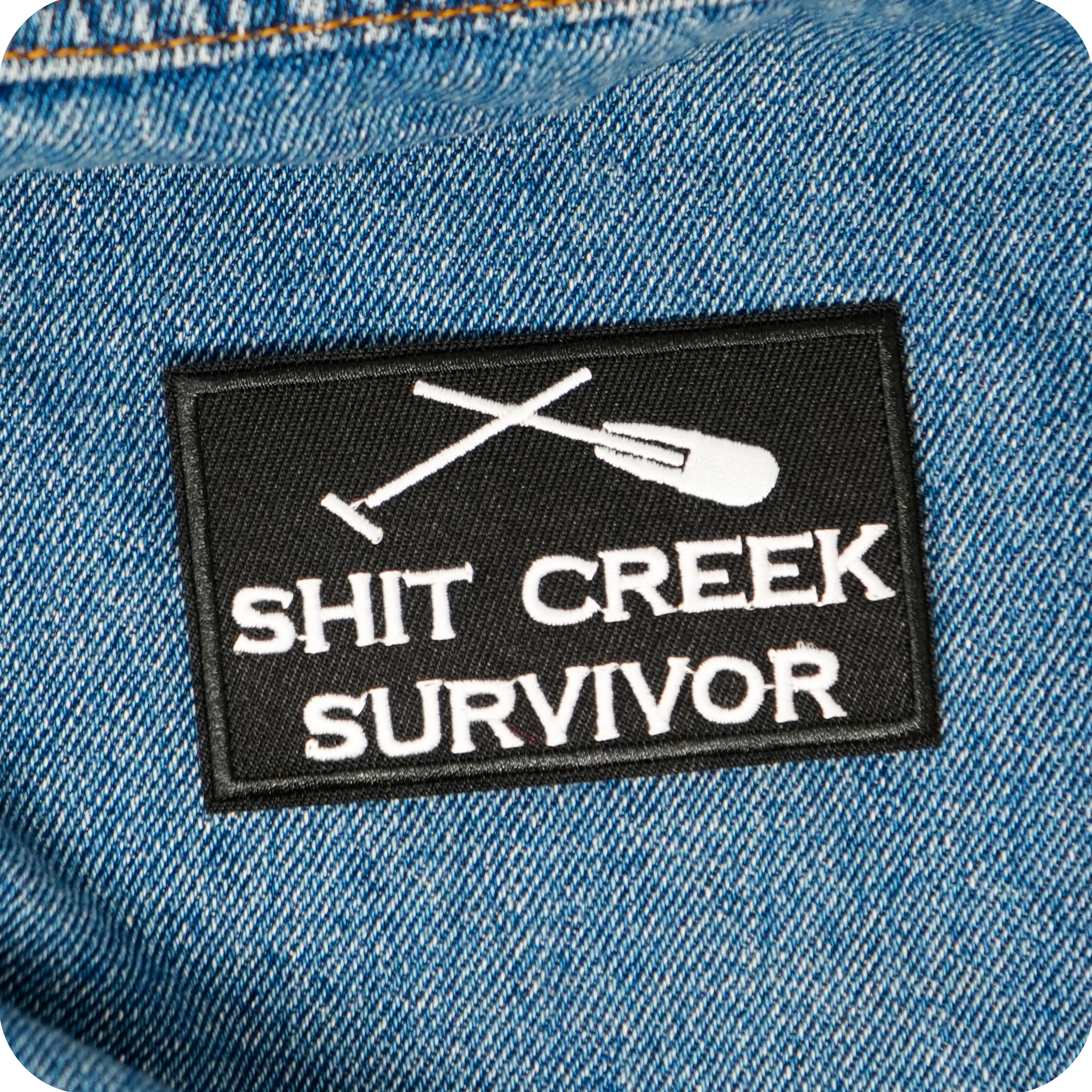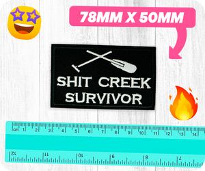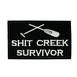 Shit Creeks Survivor Black Iron On Patch (7.8 x 5cm)