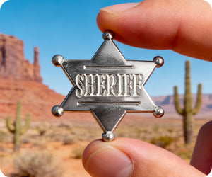 ¡Libera el vaquero que llevas dentro con el pin plateado del sheriff! Este accesorio inspirado en el salvaje oeste irradia diversión y onda, lo que lo convierte en el complemento perfecto para cualquier colección elegante. Muestra tu amor por el salvaje oeste y haz una declaración con este elegante pin.