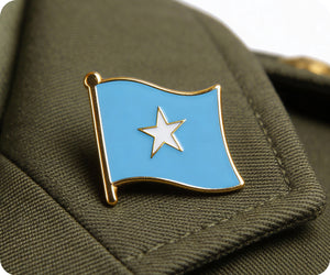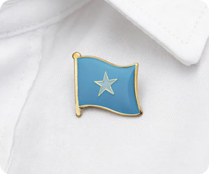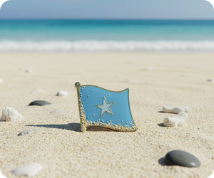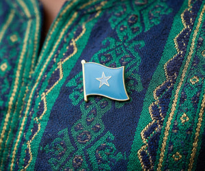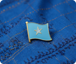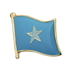 Express your Somali pride with this striking flag pin badge! Featuring the iconic light blue background with its white star, it's a wonderful way to celebrate East African heritage or show your connection to Somalia. Clip it to your jacket, bag, or anywhere you want to display national spirit. A small but meaningful badge bursting with Somali character!