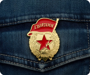 Stand at attention with this iconic Soviet "Guard Badge" pin badge! A genuine piece of USSR heritage, it's perfect for history enthusiasts, Cold War collectors, and anyone captivated by Soviet memorabilia. Featuring authentic military insignia, this badge tells stories of a bygone era. Attach it to your jacket, bag, or anywhere you want to spark intrigue and showcase your passion for historical artefacts. Compact yet commanding—wear it and celebrate the legacy of Soviet craftsmanship!