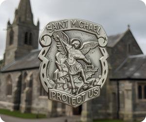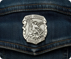 St Micheal Protector Shield Pin Badge
