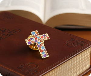 Add a touch of divine style to your outfit with our Stained Glass Crucifix Cross Pin Badge! Featuring a stunning stained glass design and a classic crucifix cross shape, this pin is perfect for any Christian. Wear it with pride and show off your faith in a unique and stylish way!