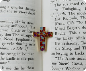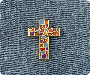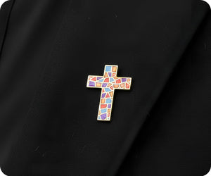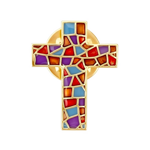 Stained Glass Crucifix Cross Pin Badge