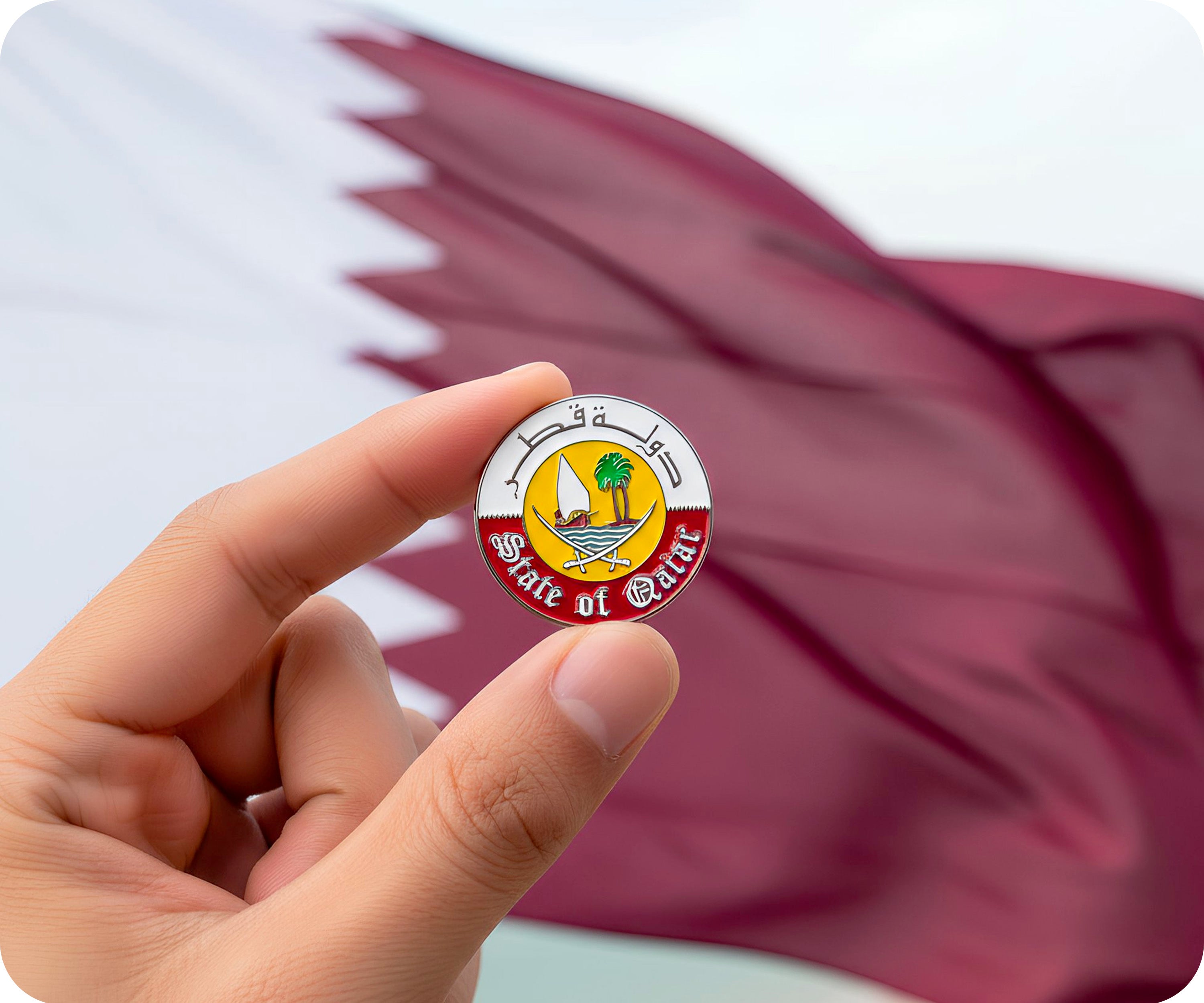 Show your love for Qatar with our State Of Qatar Emblem Round Pin Badge. Perfect for pinning on bags, jackets, and hats, this badge features a detailed emblem design that represents the beauty and diversity of Qatar. A must-have accessory for any proud Qatari (or Qatar enthusiast)!