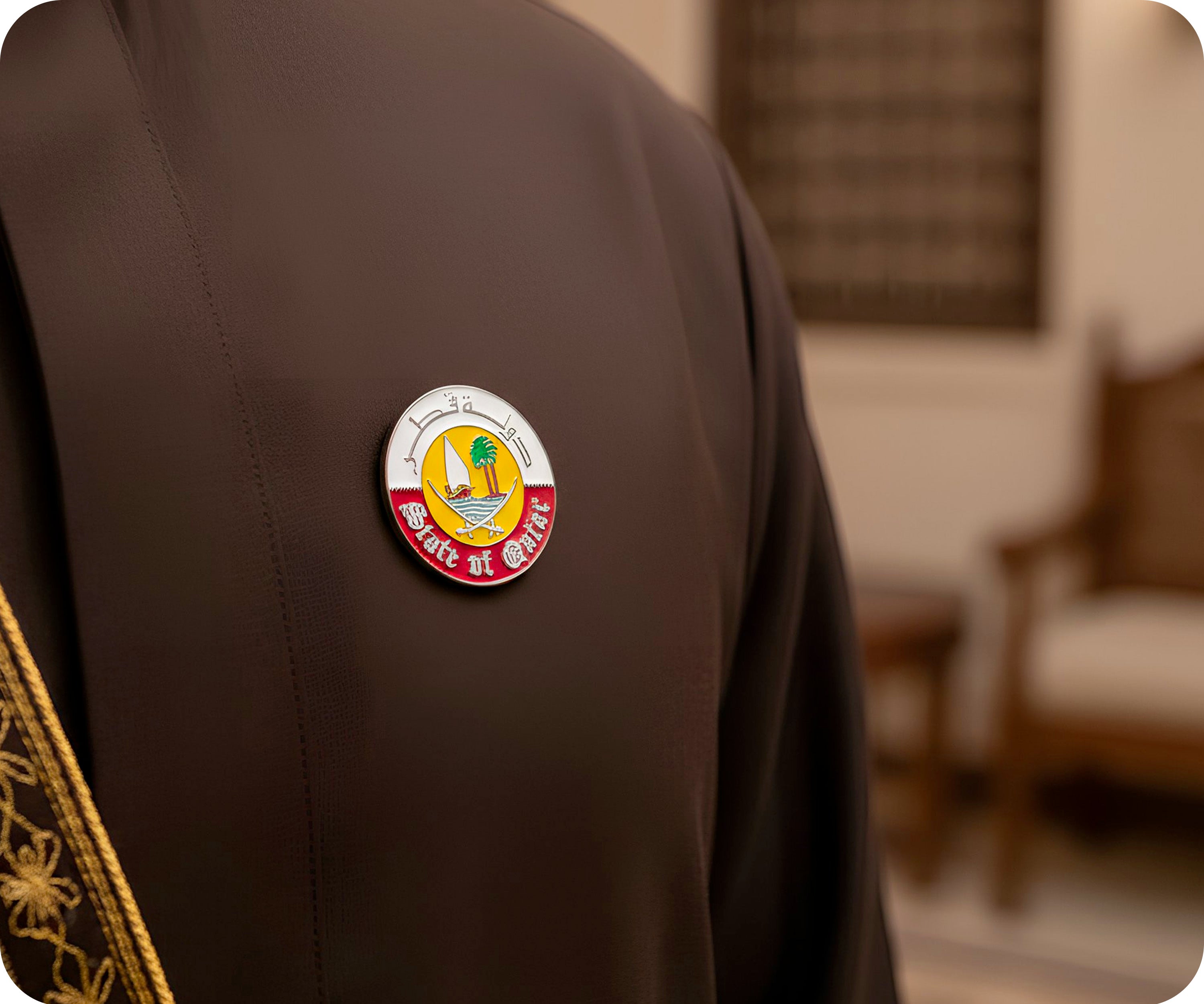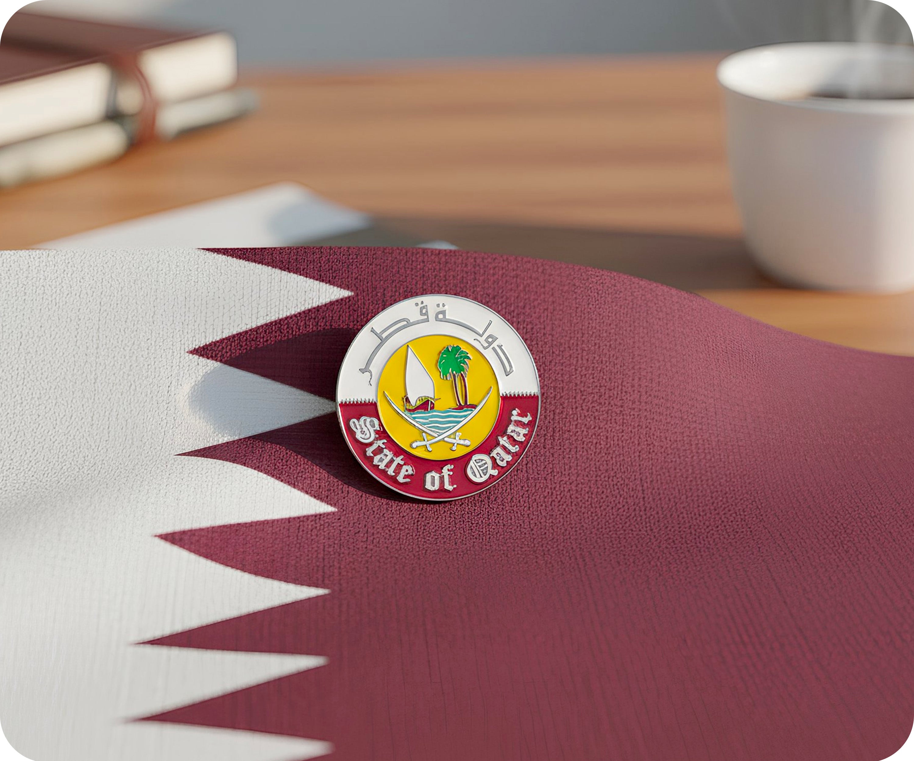 State Of Qatar Emblem Round Pin Badge