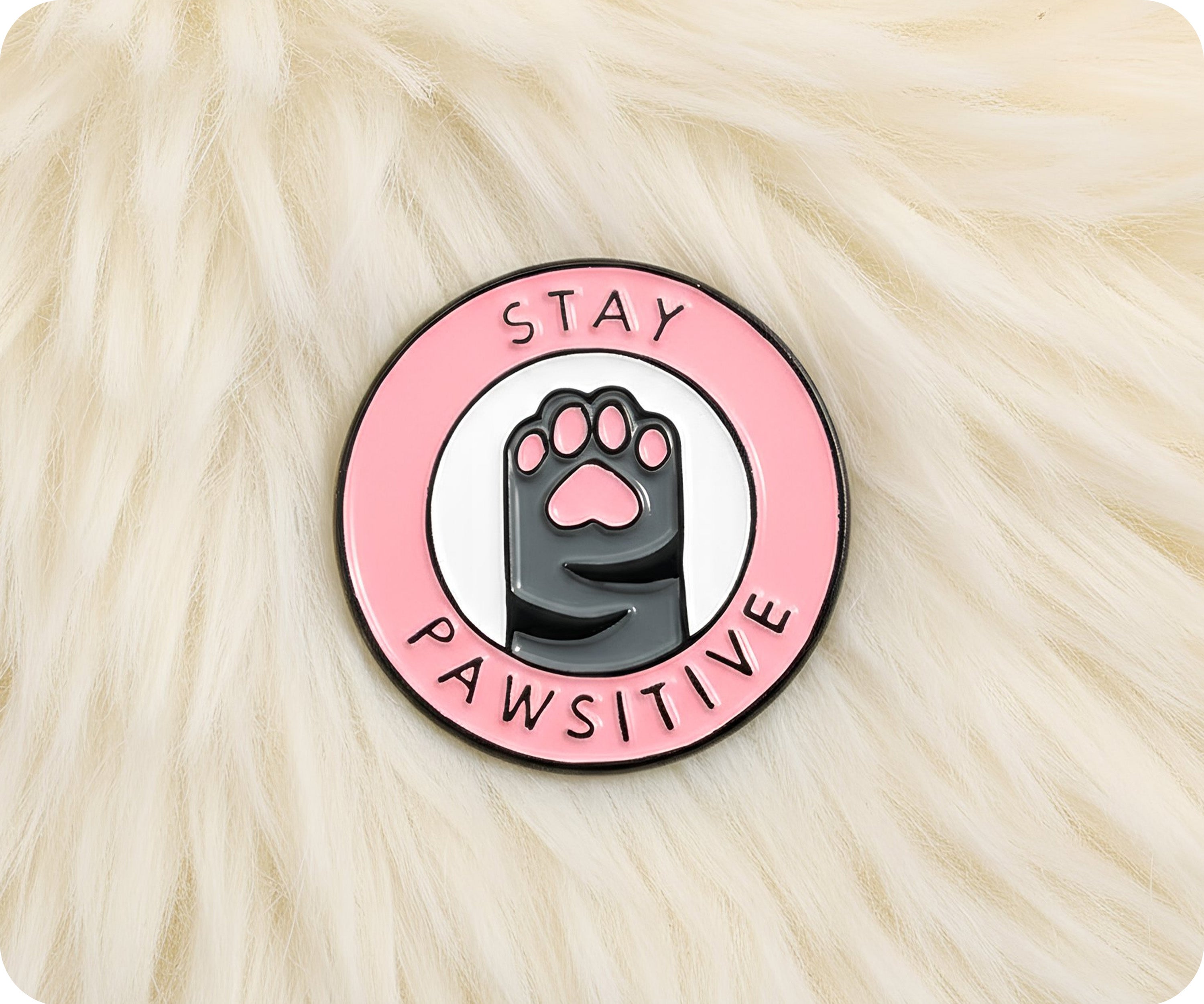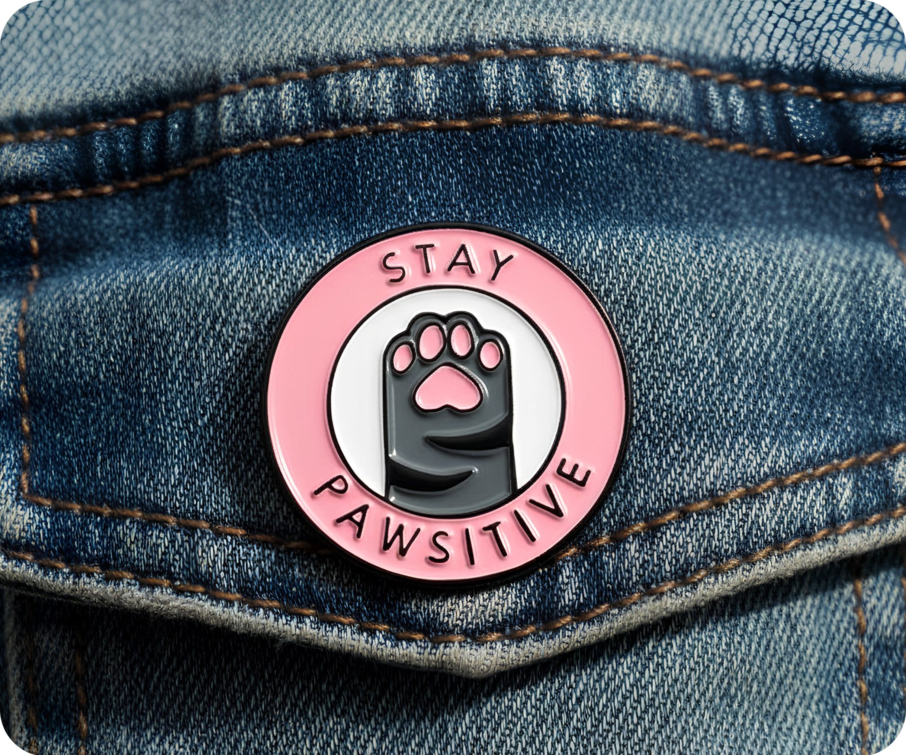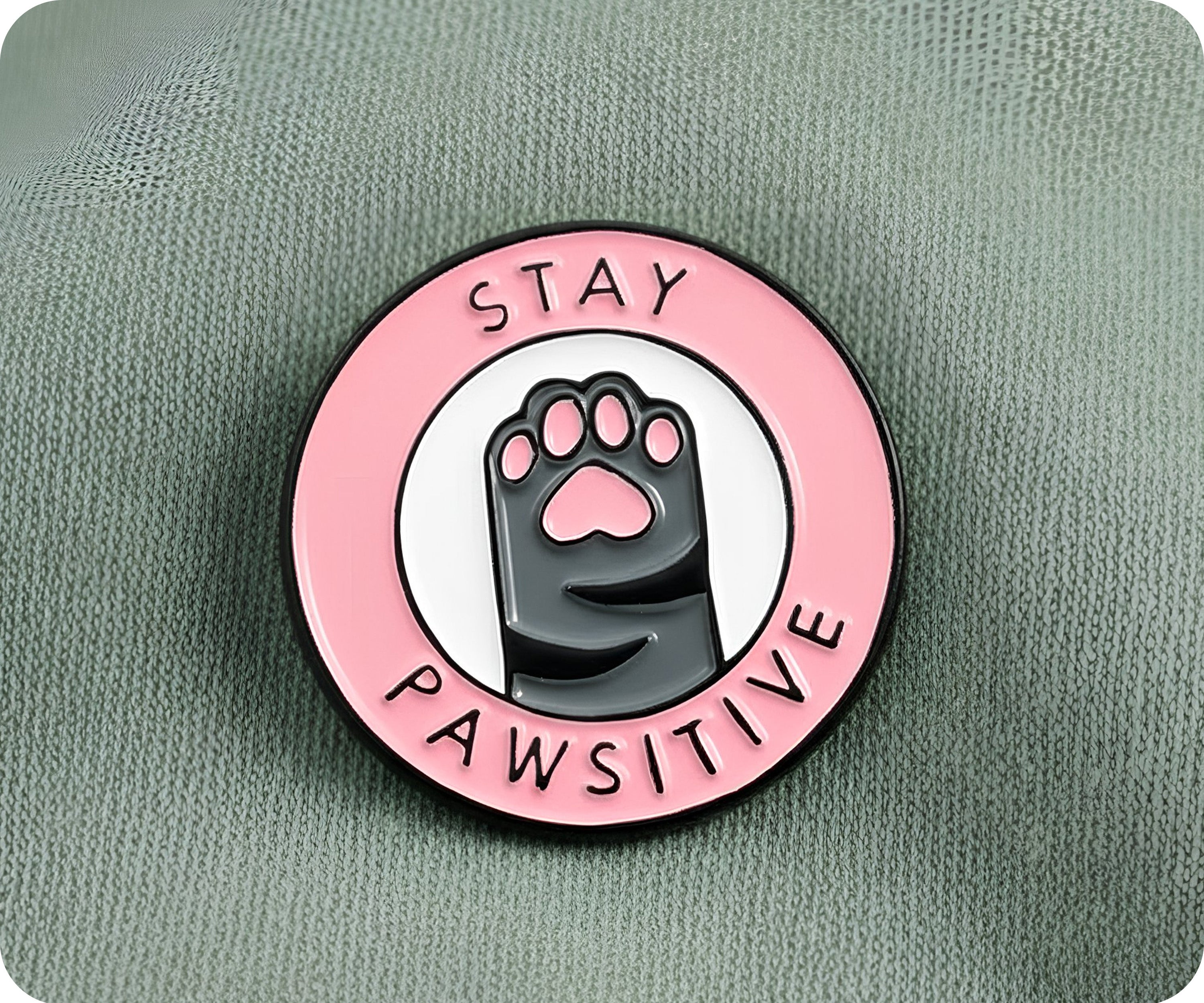 Stay Pawsitive with our quirky pin badge! Add some playfulness to your outfit and spread positivity with this one-of-a-kind accessory. Stay Pawsitive, be yourself, and take on the day with a smile!