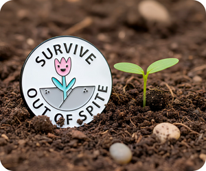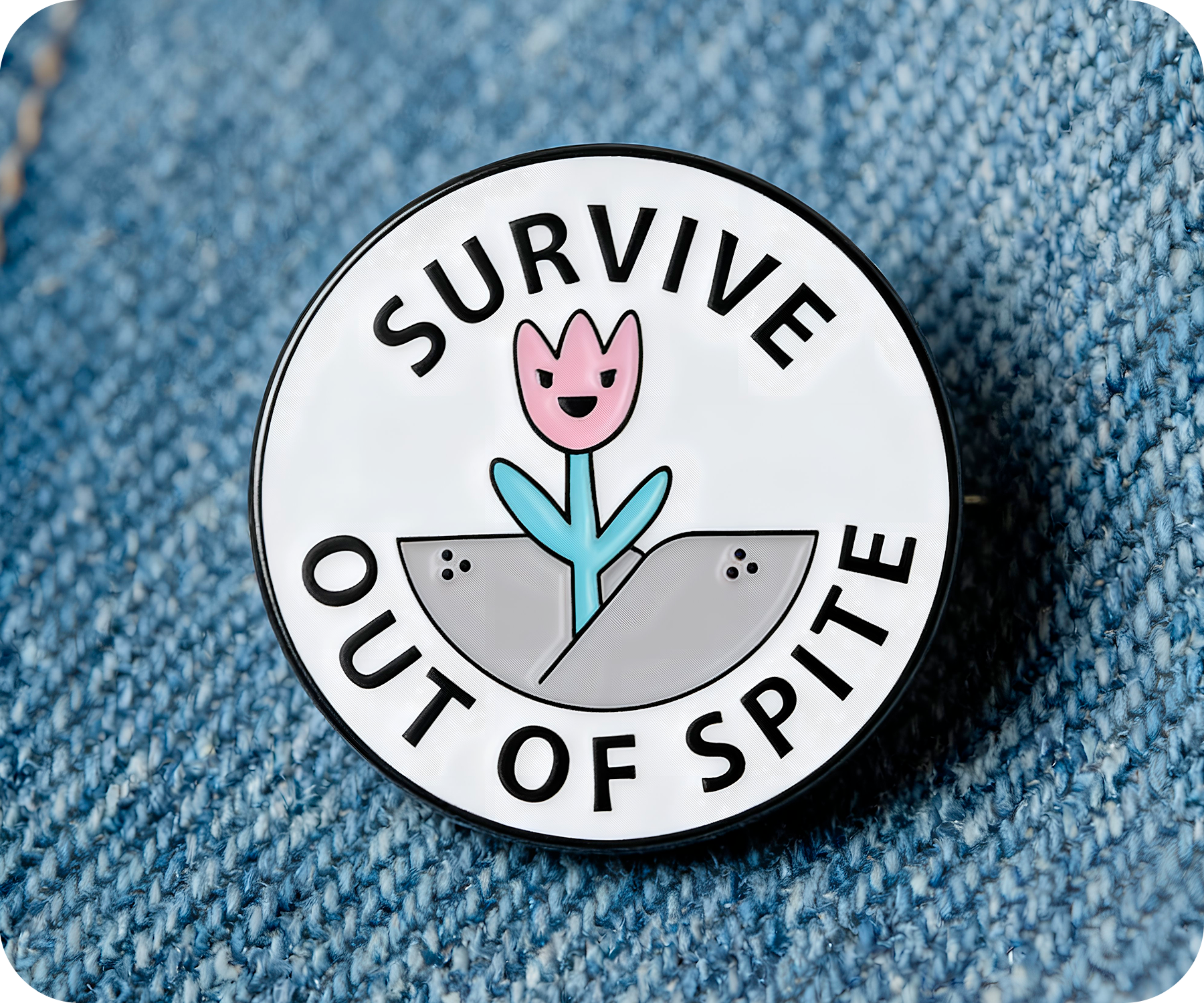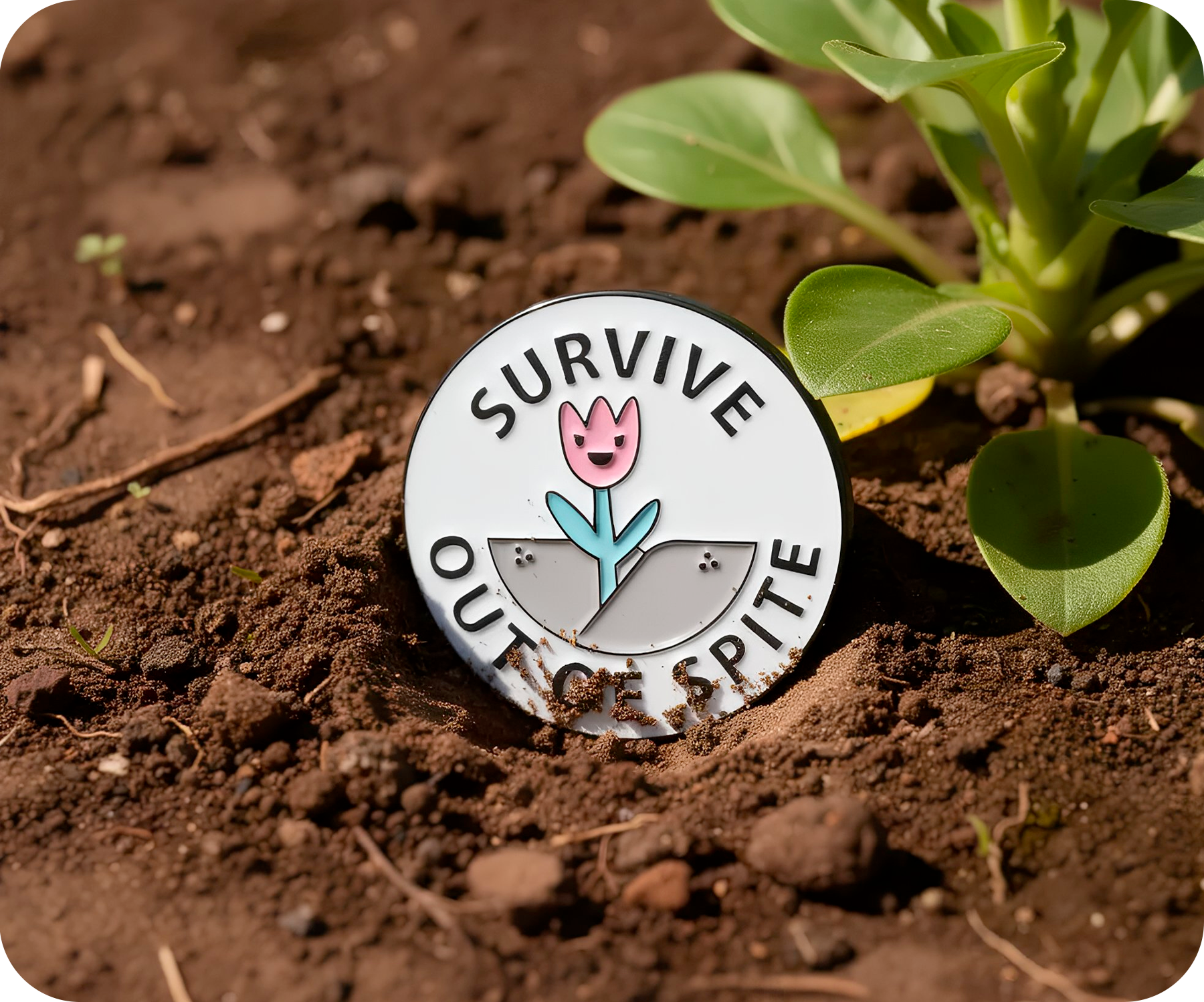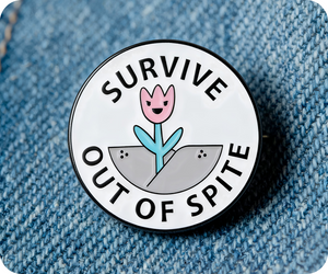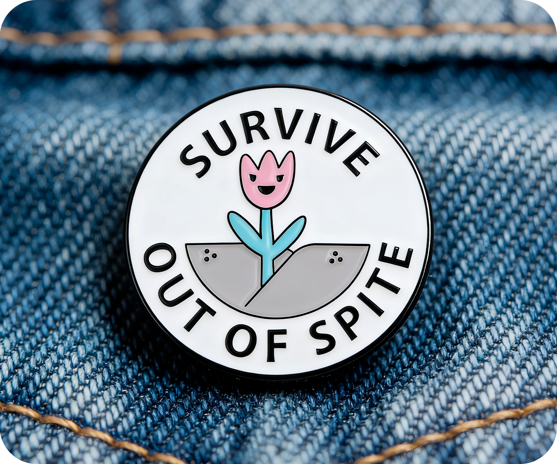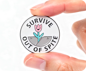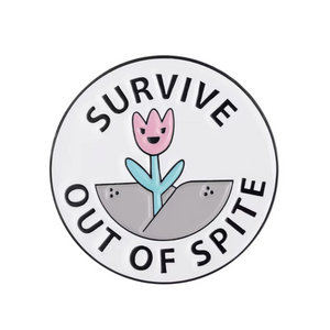 Bloom with attitude wearing the Survive Out Of Spite Flower Pin Badge. This playful accessory combines floral charm with a fierce spirit, perfect for anyone who thrives against the odds. Pin it on your jacket or bag and show the world your unstoppable vibe.