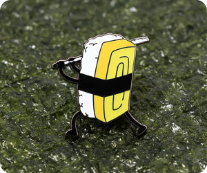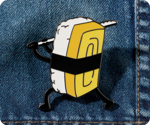 Unleash your inner sushi samurai with this quirky yellow pin badge! Perfect for any food lover or lover of puns, this badge is sure to add a playful touch to any outfit. Wear it proudly and show off your love for sushi and word play. (Sushi not included)