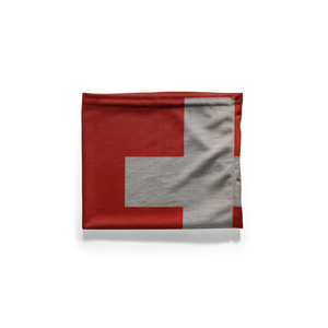 This Switzerland-inspired neck gaiter radiates crisp, iconic simplicity, mirroring the unmistakable design of the Swiss national flag. A bold, white cross sits prominently at the center of a deep red field, symbolizing neutrality, peace, and the country's long-standing humanitarian tradition. The cross, evenly proportioned with thick horizontal and vertical arms, wraps perfectly across the front of the face when worn, making a strong and symmetrical visual impact.