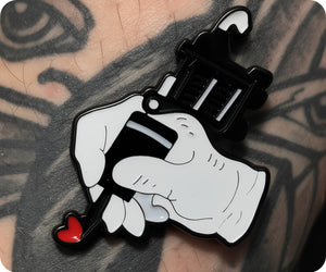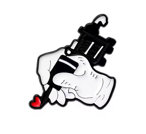 Get inked without the pain (or commitment!) with our Tattoo Gun Pin Badge. Wear this quirky accessory to show off your love for tattoos, or to add some edge to any outfit. Perfect for tattoo enthusiasts or to make a statement at your next event.