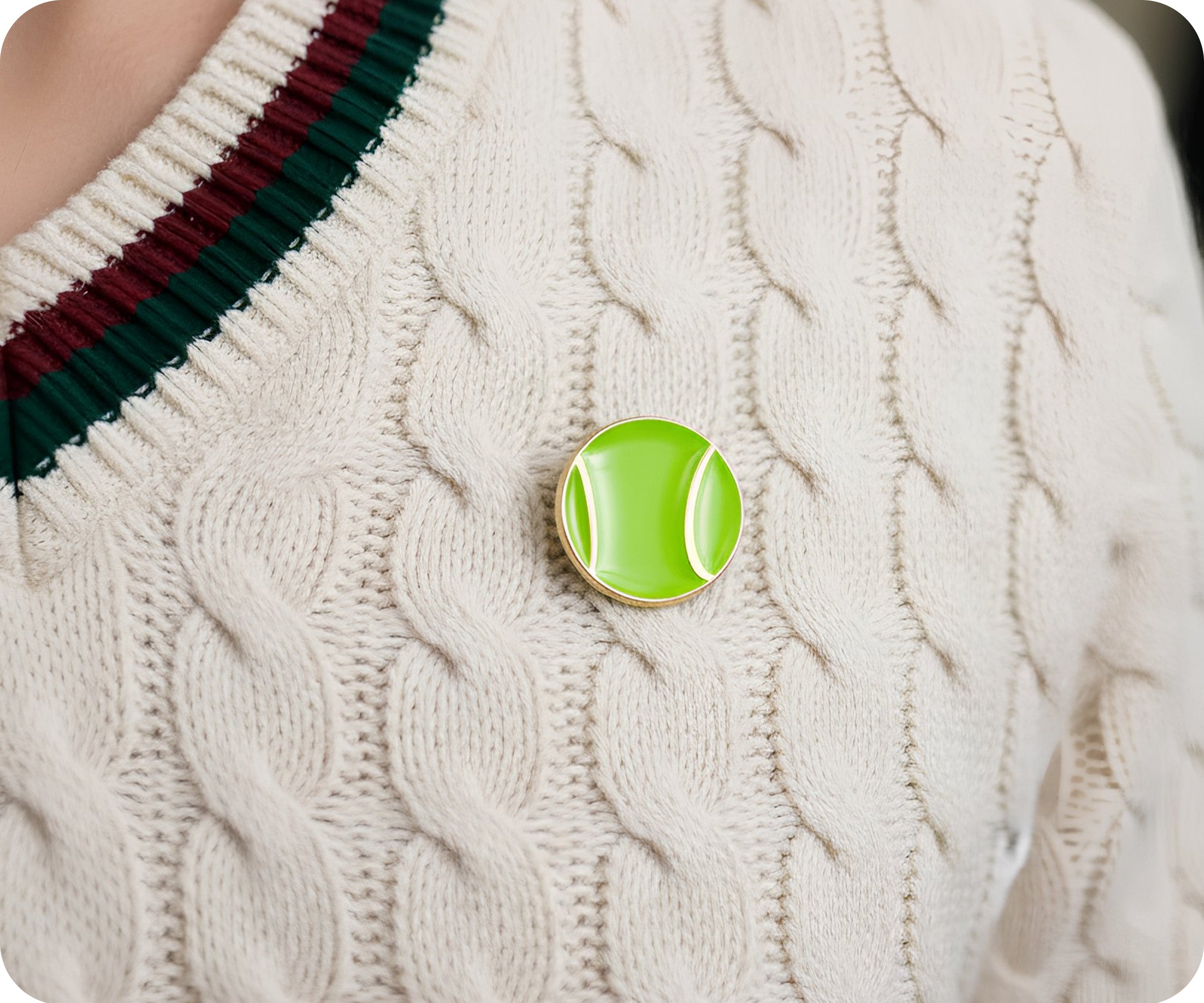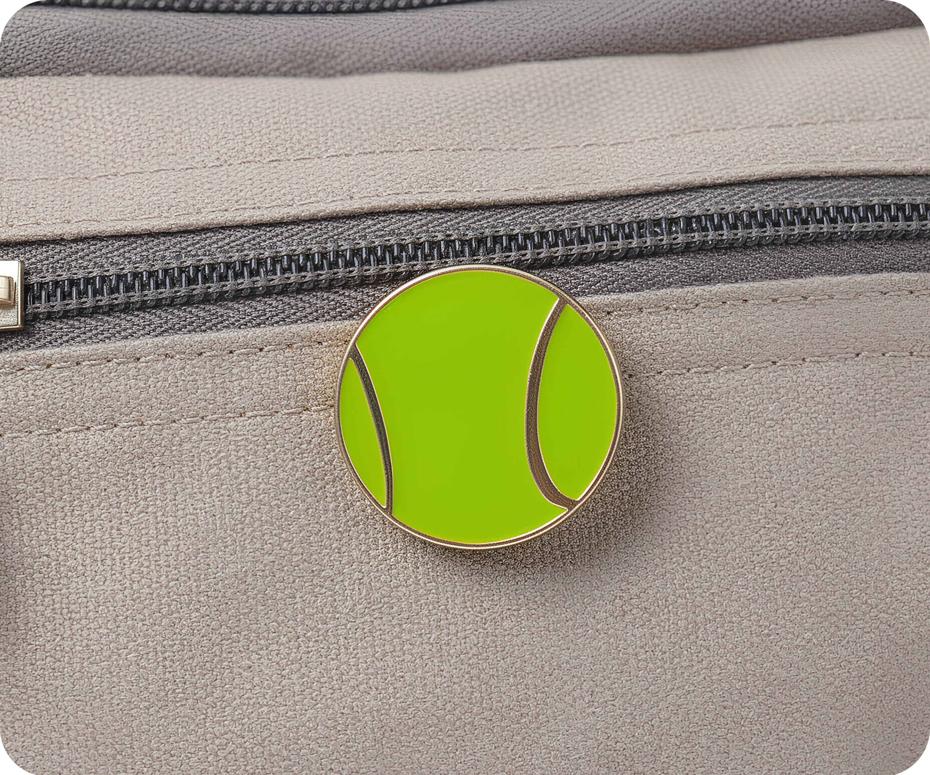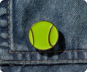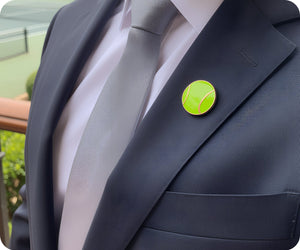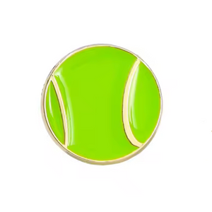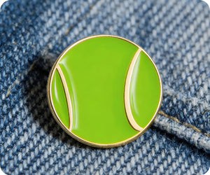 Show off your fun side with this sporty Tennis Ball pin badge. Its funky design and novelty shape make it the perfect accessory for any outfit. Don't miss out on this wearable piece that features a secure butterfly clasp. Game, set, match!