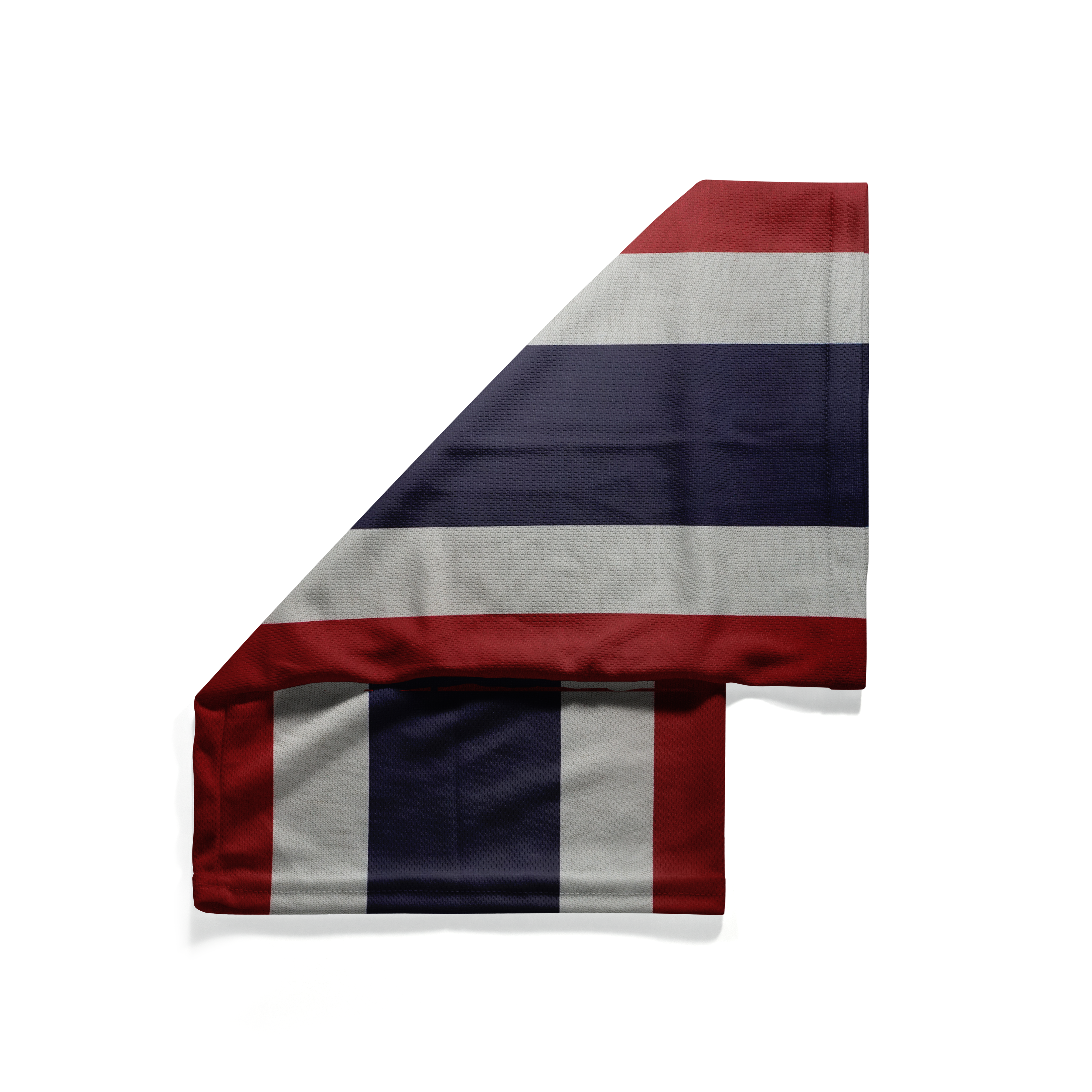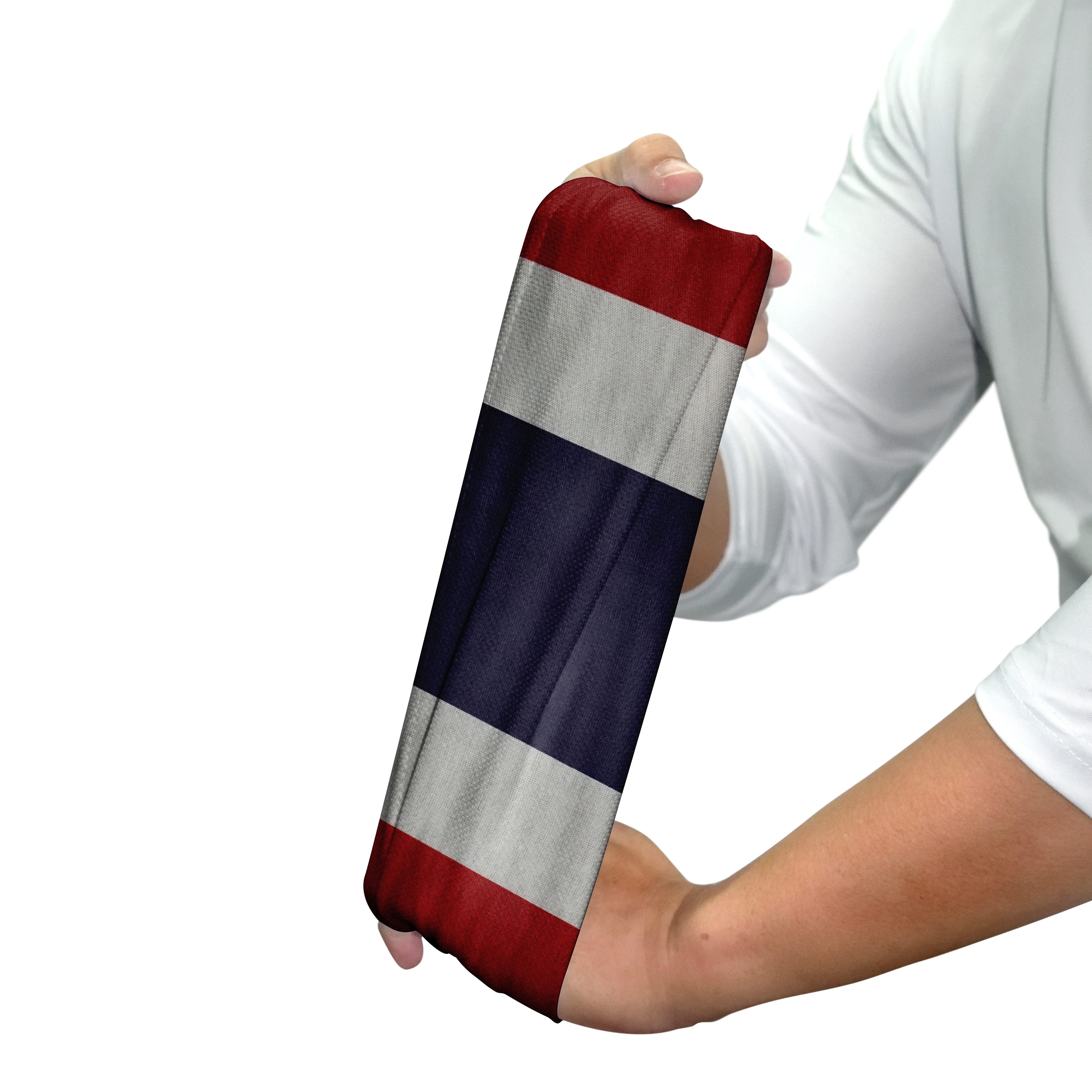 On the reverse panel, the flag pattern is displayed in full, vertically mirrored to create seamless visual flow. Whether used for protection, style, or patriotic expression, this gaiter resonates with national pride. It's a subtle yet strong way to celebrate Thailand’s identity—perfect for international sports events, cultural festivals, or everyday wear by those with a connection to or admiration for the Land of Smiles.