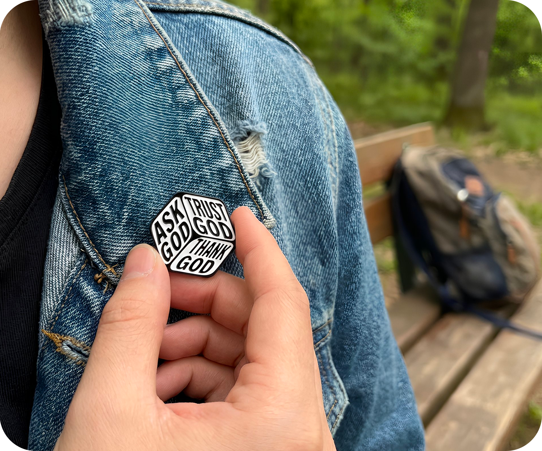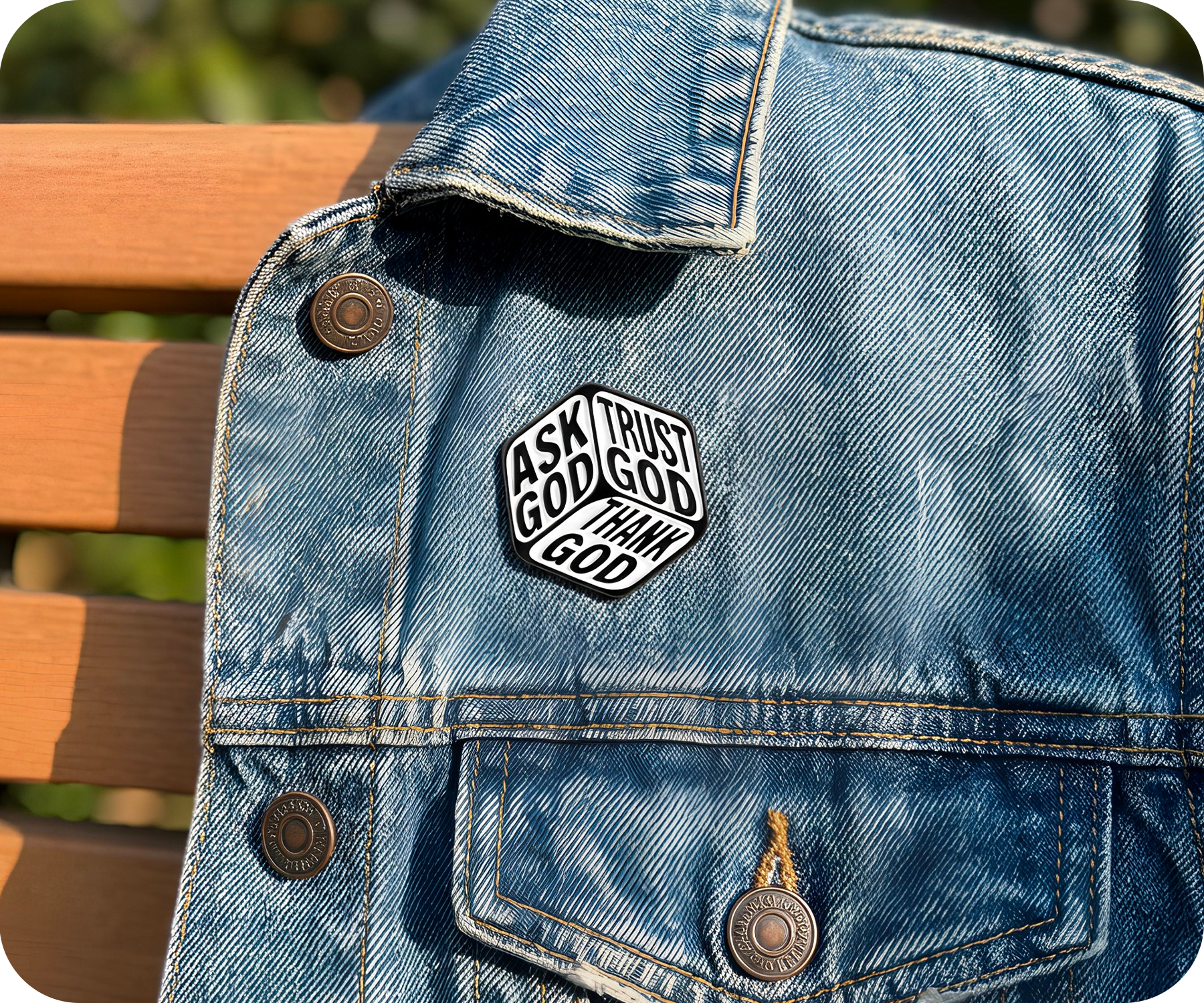 Thank God, Trust God, Ask God Dice Christianity Pin Badge