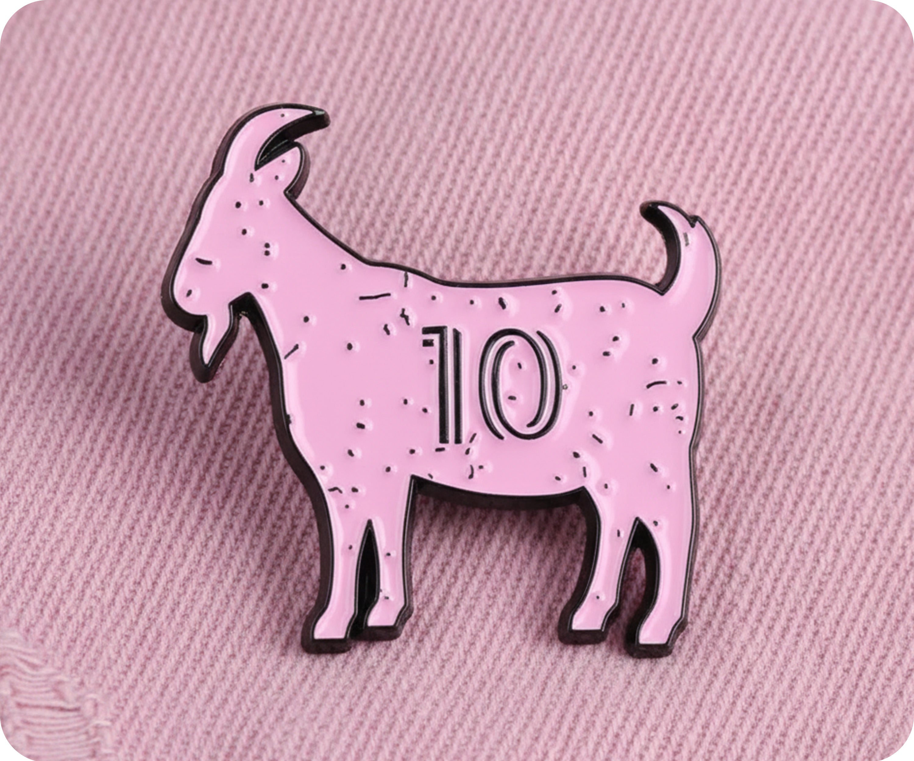 Introducing the Goat Number 10 Pin Badge, where fashion and fandom collide! This pin features the iconic number 10, a symbol of greatness and the perfect accessory for any die-hard fan. Show off your love for the GOAT (Greatest Of All Time) with this playful and unique pin.
