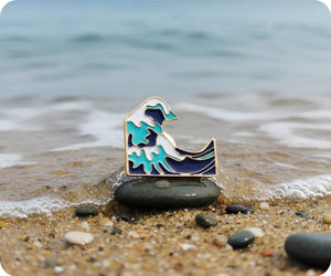 Ride the wave of iconic art with this stunning pin badge inspired by Hokusai's masterpiece! Featuring the dramatic swirl of "The Great Wave off Kanagawa," it's perfect for art lovers and Japanese culture enthusiasts alike. Clip it to your jacket, bag, or anywhere you want to add a splash of timeless beauty. A tiny tribute to one of the world's most beloved prints.