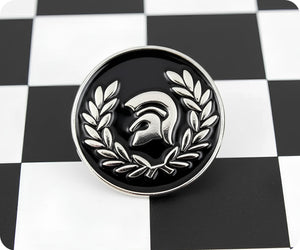 Add some Trojan flair to your outfit with this playful round pin badge featuring a Trojan helmet design! Perfect for history buffs or anyone looking to add a bit of quirkiness to their style. (Caution: may cause others to exclaim "Trojan Horse!" upon seeing it.)