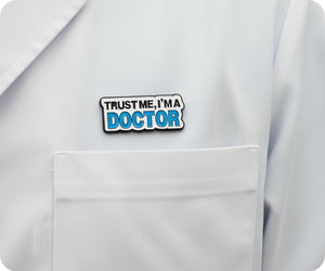 Who needs a medical degree when you have this "Trust Me I'm A Doctor" Pin Badge? Let the quirky wordplay and double meaning do the talking for you, while you show off your playful and humorous side. Perfect for doctors and medical professionals, or anyone with a good sense of humor!