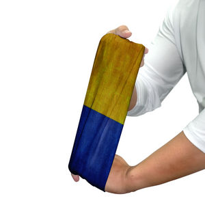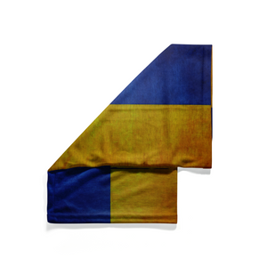 This gaiter showcases the iconic vertical layout of the Ukrainian flag in a richly textured design. The left half features a deep cobalt blue, symbolizing the sky and peace, while the right half carries a golden yellow hue representing the country’s wheat fields and prosperity. The worn-in texture gives the design a sense of history and resilience.