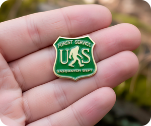 Embrace the legend with this hilarious United States Forest Service Sasquatch Department Pin Badge. A tongue-in-cheek tribute to cryptid enthusiasts and forest wanderers everywhere, this badge playfully imagines Bigfoot as an official government concern. Pin it to your hiking pack, jacket, or anywhere you want fellow cryptid believers and nature lovers to spot your sense of humour. Perfect for anyone who's ever scanned the treeline hoping for a glimpse of the elusive creature, this badge celebrates the fun side of outdoor adventure and cryptozoological curiosity. A witty way to show you're always on the lookout for a little mystery in the woods.